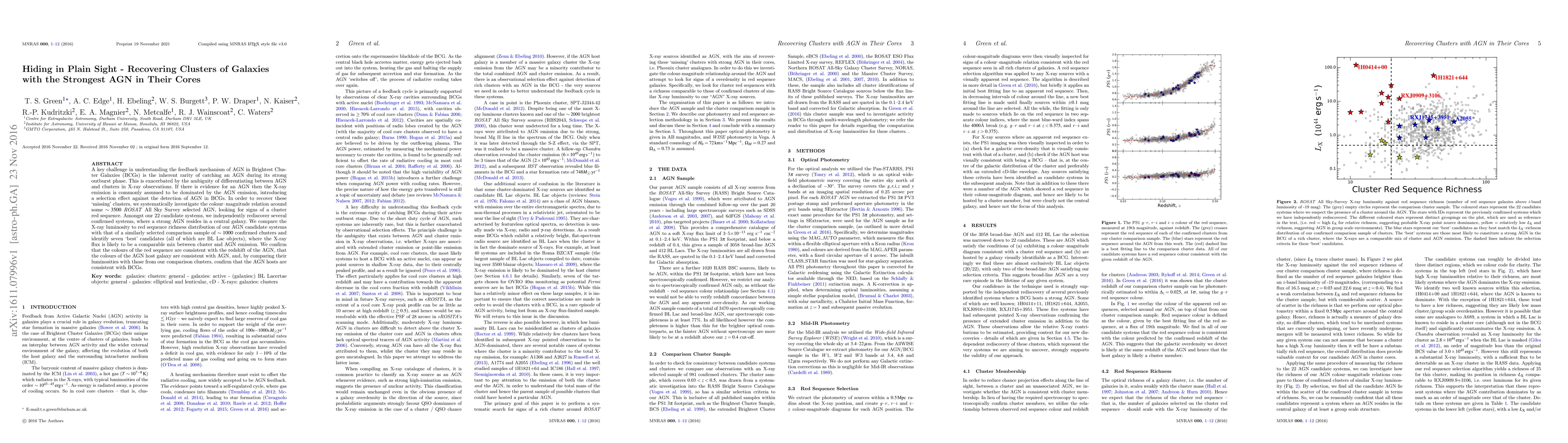 A key challenge in understanding the feedback mechanism of AGN in Brightest Cluster Galaxies (BCGs) is the inherent rarity of catching an AGN during its strong outburst phase. This is exacerbated by the ambiguity of differentiating between AGN and clusters in X-ray observations. If there is evidence for an AGN then the X-ray emission is commonly assumed to be dominated by the AGN emission, introducing a selection effect against the detection of AGN in BCGs. In order to recover these 'missing' clusters, we systematically investigate the colour-magnitude relation around some ~3500 ROSAT All Sky Survey selected AGN, looking for signs of a cluster red sequence. Amongst our 22 candidate systems, we independently rediscover several confirmed systems, where a strong AGN resides in a central galaxy. We compare the X-ray luminosity to red sequence richness distribution of our AGN candidate systems with that of a similarly selected comparison sample of ~1000 confirmed clusters and identify seven 'best' candidates (all of which are BL Lac objects), where the X-ray flux is likely to be a comparable mix between cluster and AGN emission. We confirm that the colours of the red sequence are consistent with the redshift of the AGN, that the colours of the AGN host galaxy are consistent with AGN, and, by comparing their luminosities with those from our comparison clusters, confirm that the AGN hosts are consistent with BCGs.