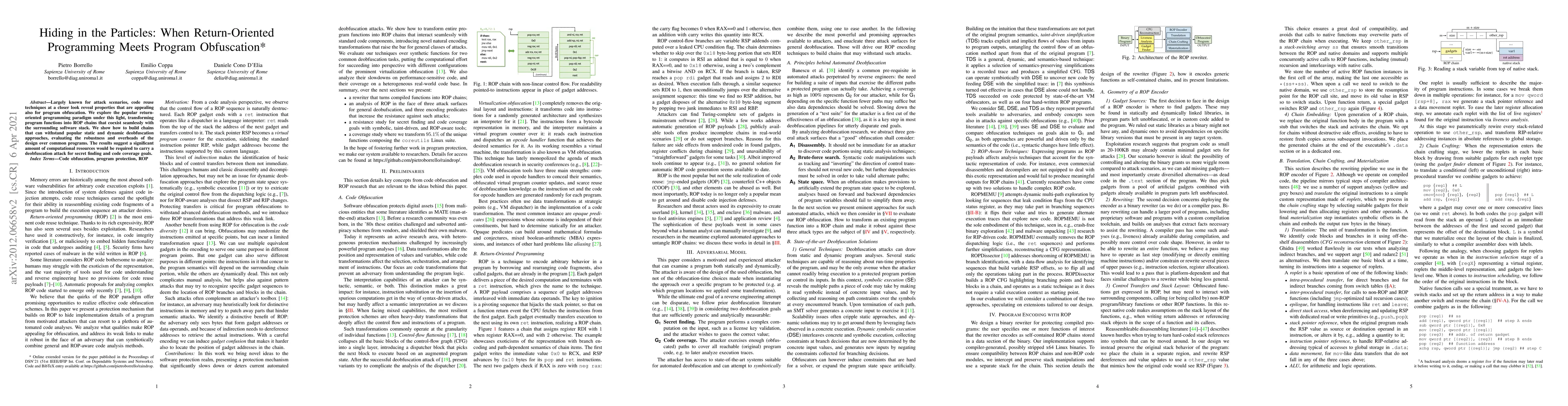 This paper investigates how return-oriented programming (ROP) can be used to obfuscate code, creating ROP chains that blend with existing software. The study demonstrates that these ROP-based obfuscations can effectively resist both static and dynamic deobfuscation techniques, highlighting the significant computational resources needed for successful deobfuscation.