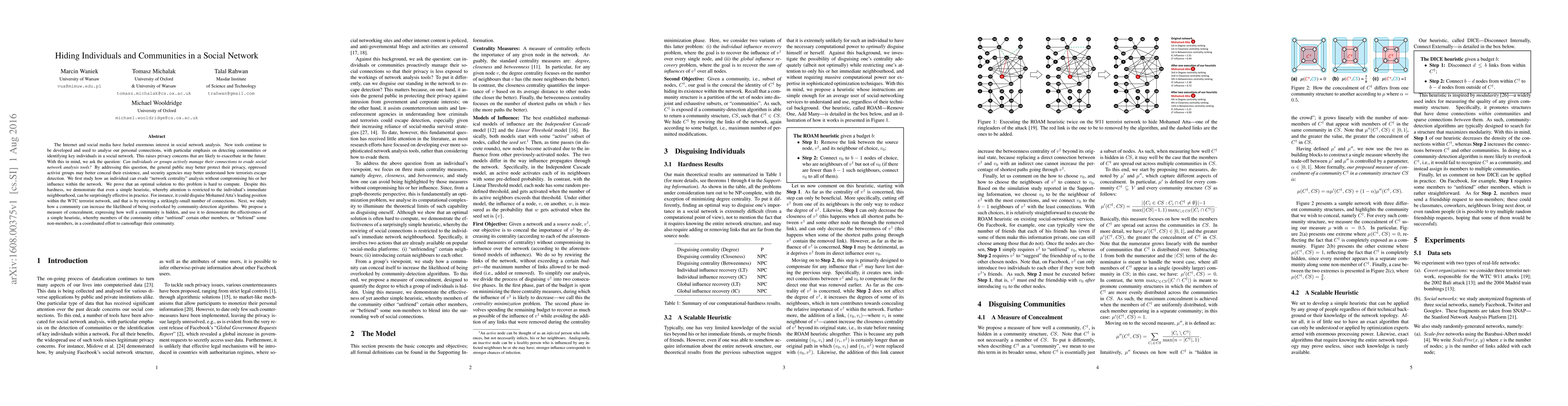 Researchers investigate how individuals and communities can evade social network analysis tools to protect privacy and conceal identities, finding that simple heuristics can be surprisingly effective in practice.