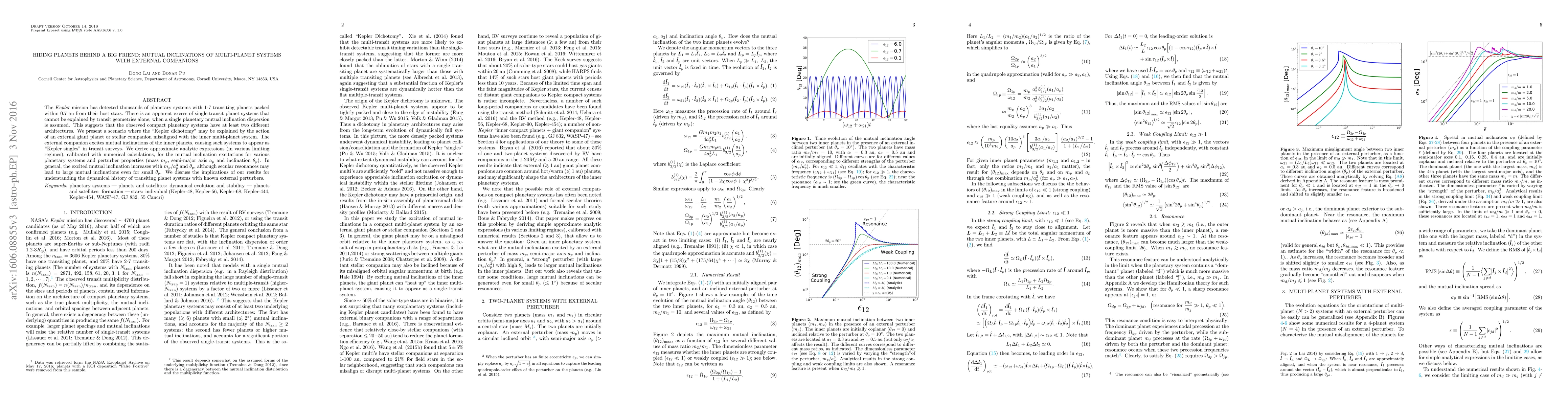 The paper proposes that external giant planets or stellar companions misaligned with inner multi-planet systems can excite mutual inclinations, causing some systems to appear as single-transit planets in surveys. This mechanism may explain the "Kepler dichotomy" and the excess of single-transit systems observed.