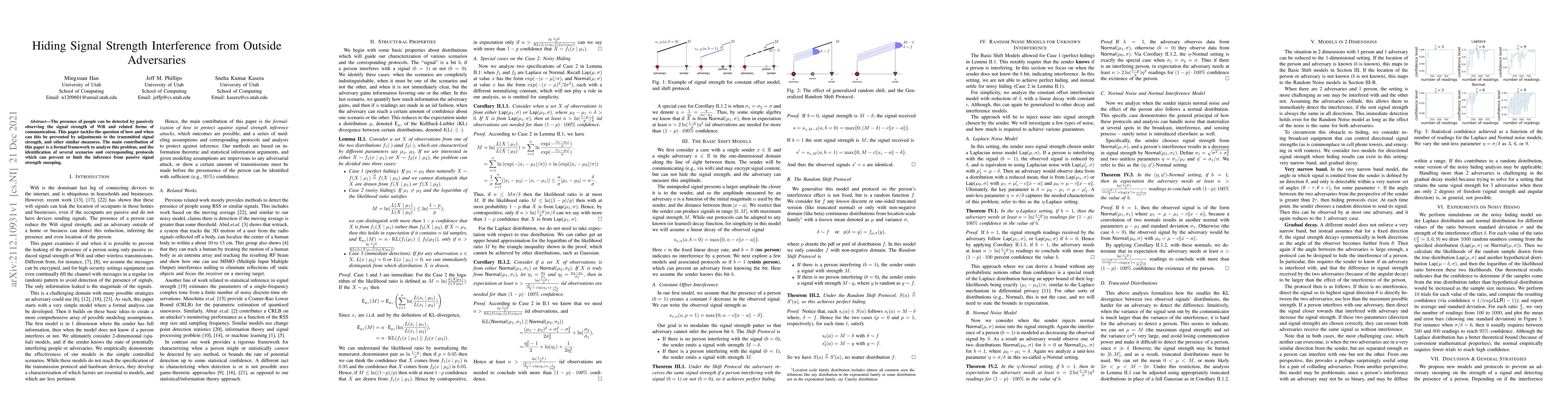 The presence of people can be detected by passively observing the signal strength of Wifi and related forms of communication. This paper tackles the question of how and when can this be prevented by adjustments to the transmitted signal strength, and other similar measures. The main contribution of this paper is a formal framework to analyze this problem, and the identification of several scenarios and corresponding protocols which can prevent or limit the inference from passive signal strength snooping.