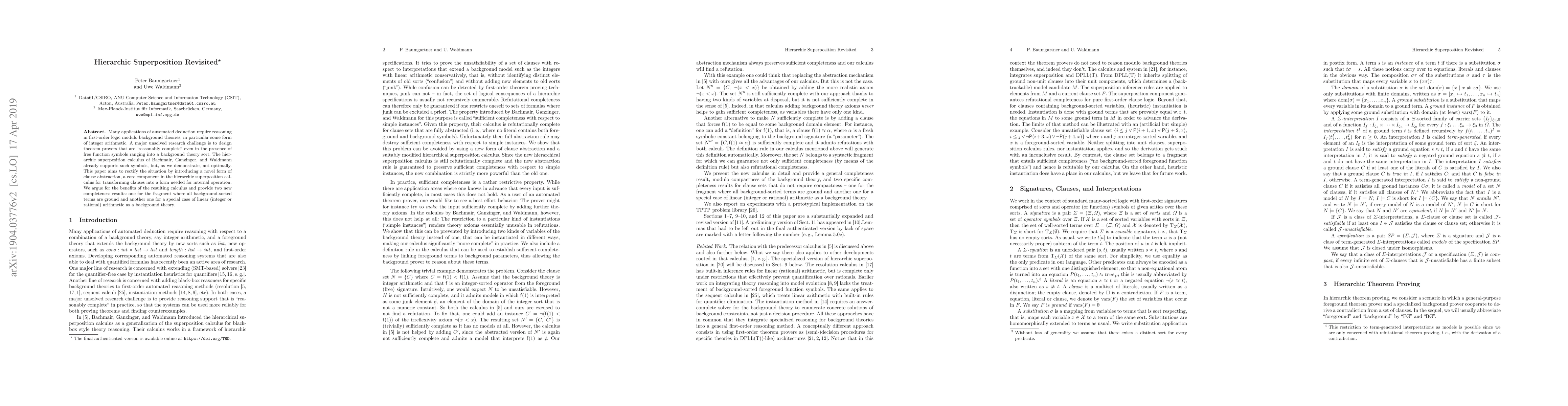 This paper introduces a novel clause abstraction technique to enhance the hierarchic superposition calculus for automated deduction, aiming to improve completeness in first-order logic with integer arithmetic. It provides two new completeness results for specific fragments of background theories.