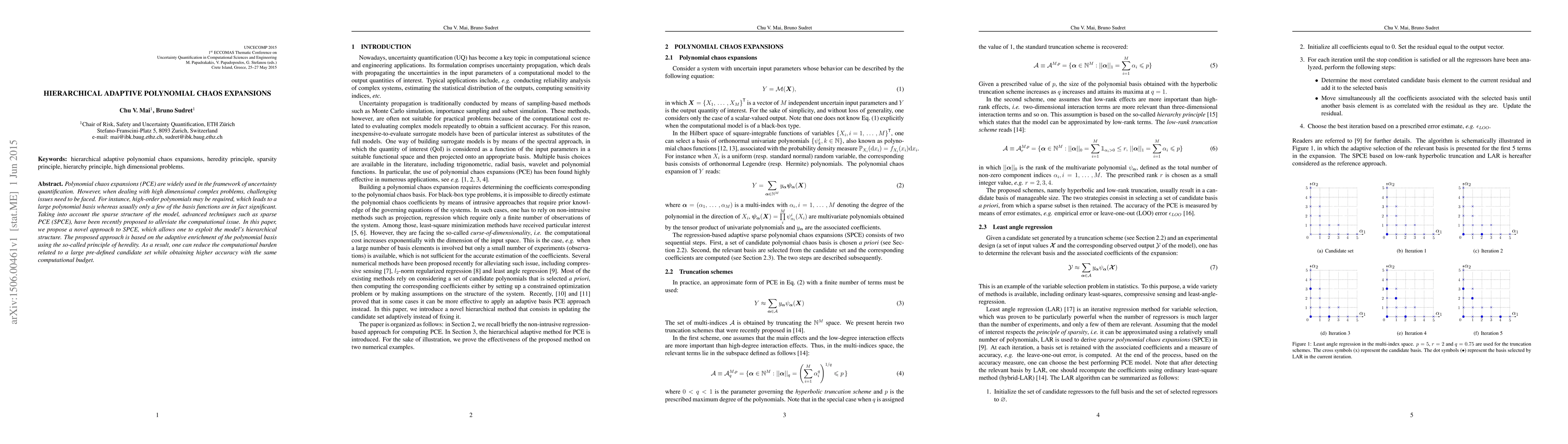 This paper introduces a novel hierarchical adaptive polynomial chaos expansion (PCE) method to improve sparse PCE for high-dimensional problems. It leverages the principle of heredity to adaptively enrich the polynomial basis, reducing computational costs while maintaining or enhancing accuracy.