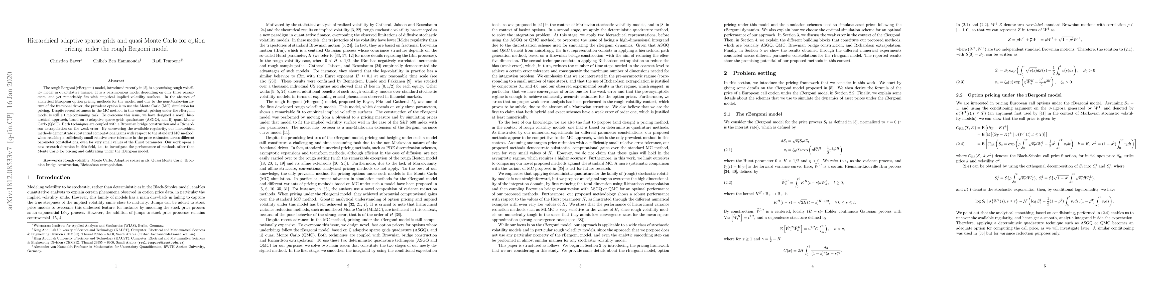 This paper proposes a novel hierarchical adaptive sparse grids quadrature and quasi-Monte Carlo method for pricing options under the rough Bergomi model, achieving significant computational efficiency gains compared to standard Monte Carlo methods, especially for small Hurst parameters. The approach combines adaptive sparse grids, quasi-Monte Carlo, and Richardson extrapolation to improve accuracy and reduce computation time.