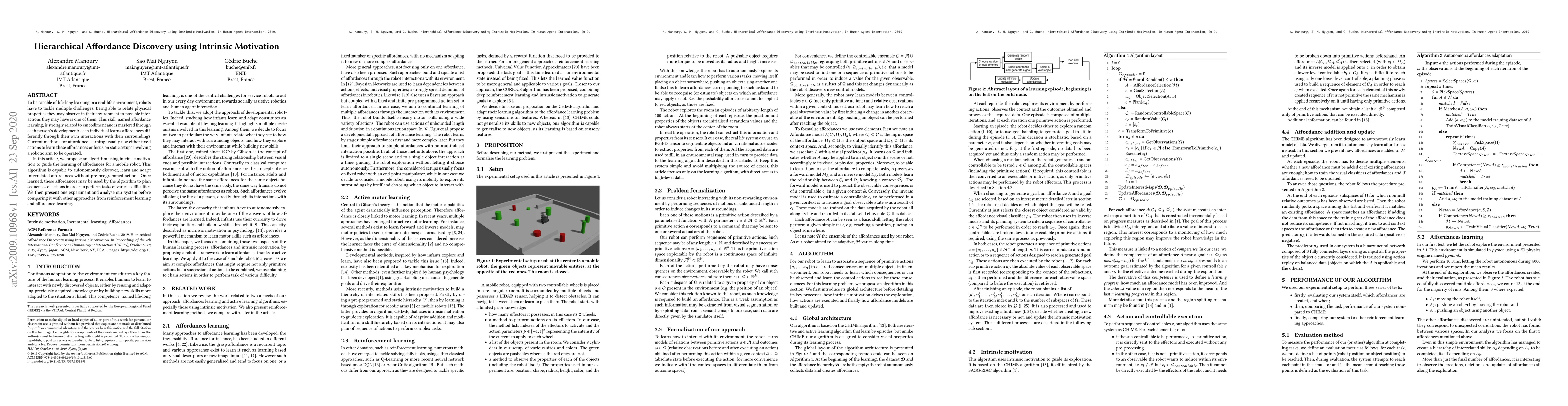 Researchers propose a new algorithm using intrinsic motivation to enable mobile robots to autonomously discover and learn affordances in their environment without pre-programmed actions. The algorithm allows for flexible planning of action sequences to perform tasks of varying difficulties.
