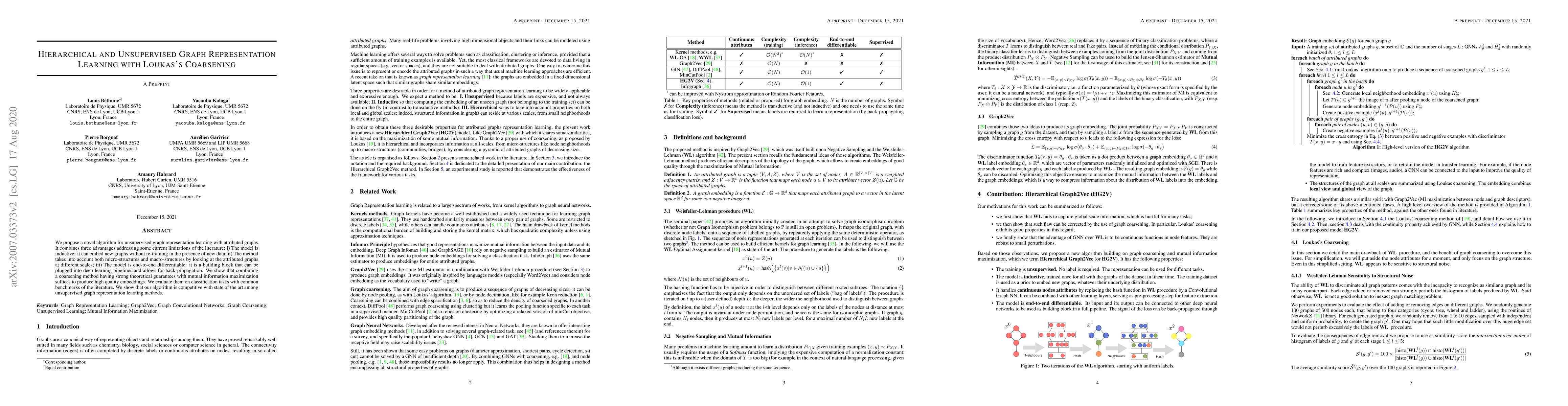 This paper introduces a novel unsupervised graph representation learning algorithm that leverages hierarchical coarsening to capture both micro- and macro-structures in attributed graphs. The method is inductive, differentiable, and competitive with state-of-the-art approaches in classification tasks.