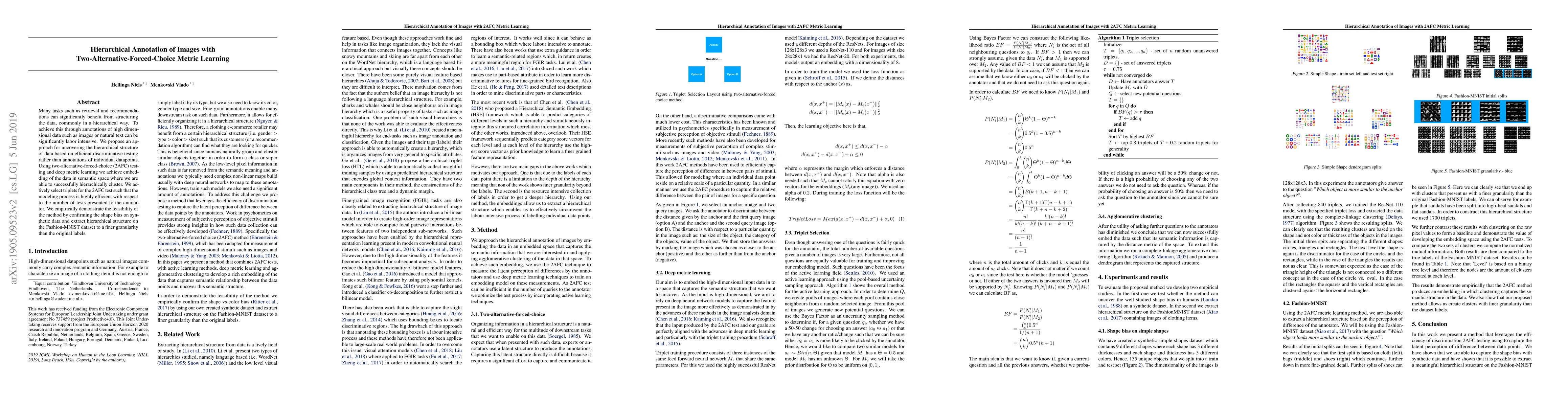 Many tasks such as retrieval and recommendations can significantly benefit from structuring the data, commonly in a hierarchical way. To achieve this through annotations of high dimensional data such as images or natural text can be significantly labor intensive. We propose an approach for uncovering the hierarchical structure of data based on efficient discriminative testing rather than annotations of individual datapoints. Using two-alternative-forced-choice (2AFC) testing and deep metric learning we achieve embedding of the data in semantic space where we are able to successfully hierarchically cluster. We actively select triplets for the 2AFC test such that the modeling process is highly efficient with respect to the number of tests presented to the annotator. We empirically demonstrate the feasibility of the method by confirming the shape bias on synthetic data and extract hierarchical structure on the Fashion-MNIST dataset to a finer granularity than the original labels.