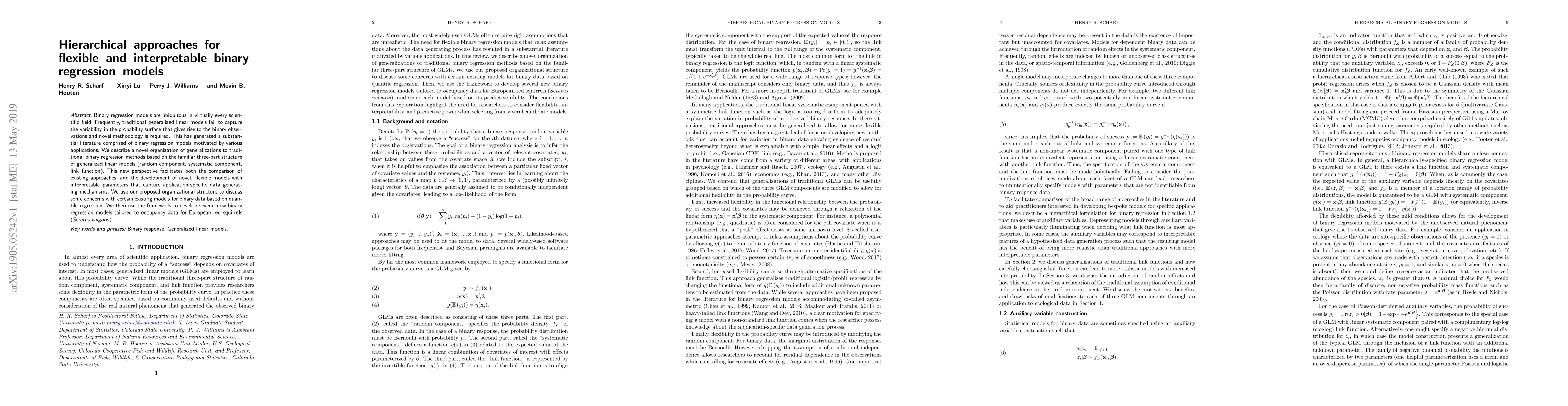 Researchers propose a novel approach to binary regression models, providing a flexible framework for capturing variability in probability surfaces and developing interpretable parameters that mimic real-world data generating mechanisms. The study introduces new models tailored to occupancy data of European red squirrels, addressing limitations of existing methods.