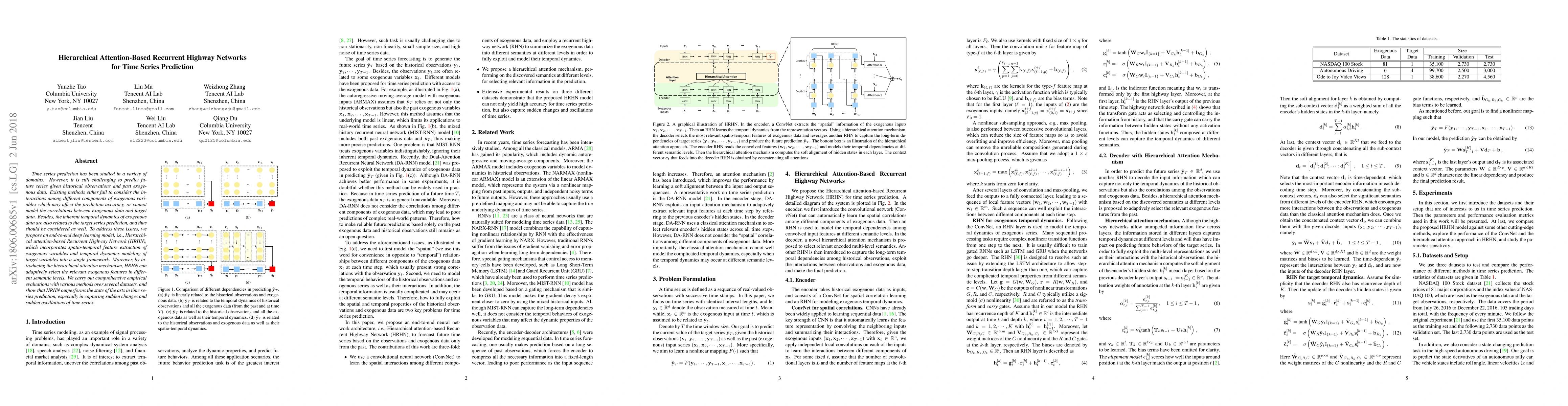 The paper proposes a Hierarchical Attention-based Recurrent Highway Network (HRHN) to improve time series prediction by integrating exogenous variables' spatio-temporal features and target variables' temporal dynamics. HRHN employs a hierarchical attention mechanism to select relevant features adaptively, outperforming existing methods in capturing sudden changes and oscillations in time series.