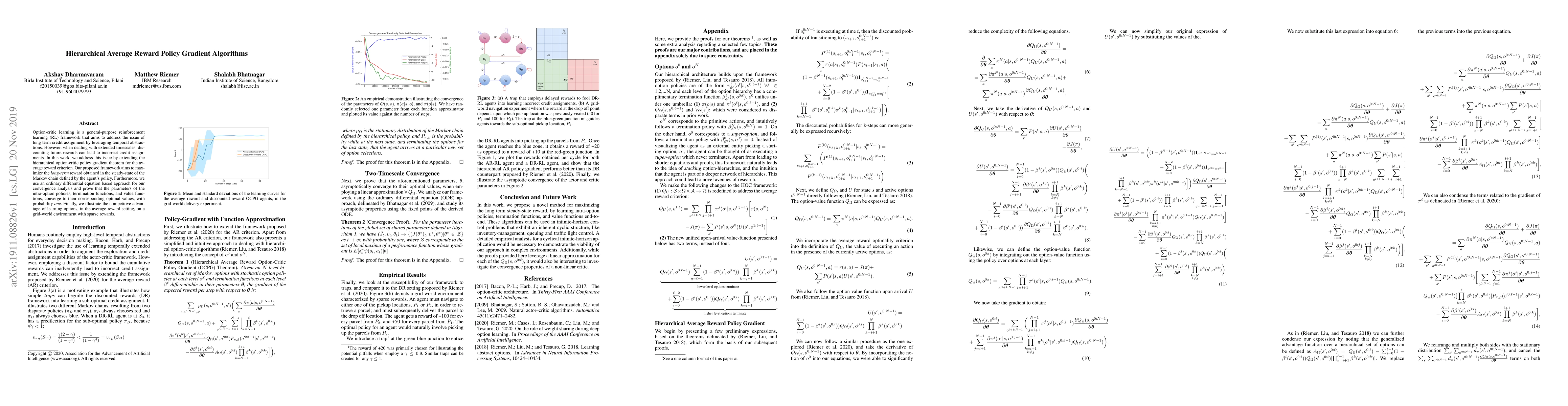 This paper proposes a hierarchical average reward policy gradient algorithm to address long-term credit assignment in reinforcement learning, leveraging temporal abstractions. It proves convergence of the parameters to optimal values and demonstrates its effectiveness in a grid-world environment with sparse rewards.