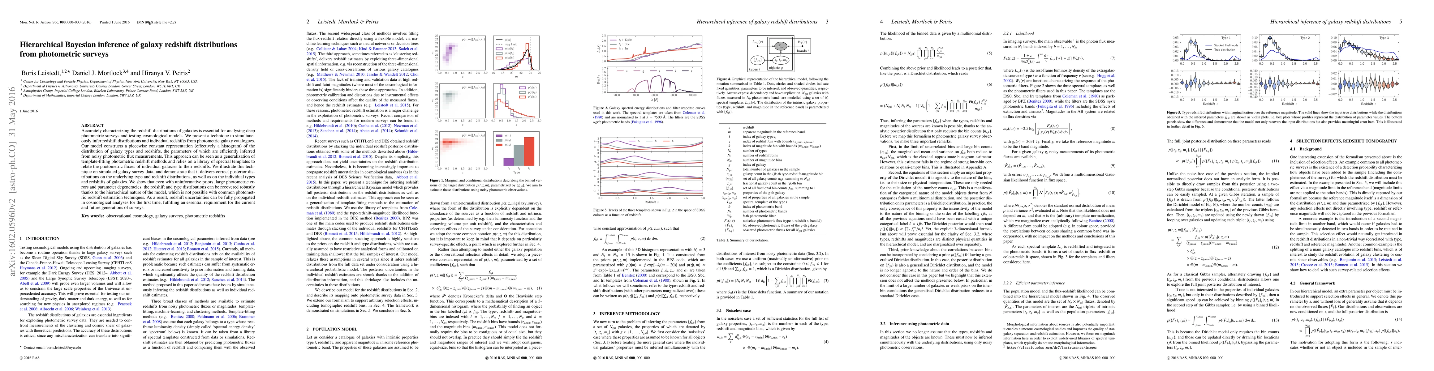 This paper introduces a hierarchical Bayesian method to infer galaxy redshift distributions and individual redshifts from photometric surveys, using a piecewise constant model and spectral templates. It demonstrates robust recovery of redshift and type distributions even with large photometric errors, enabling accurate propagation of redshift uncertainties in cosmological analyses.