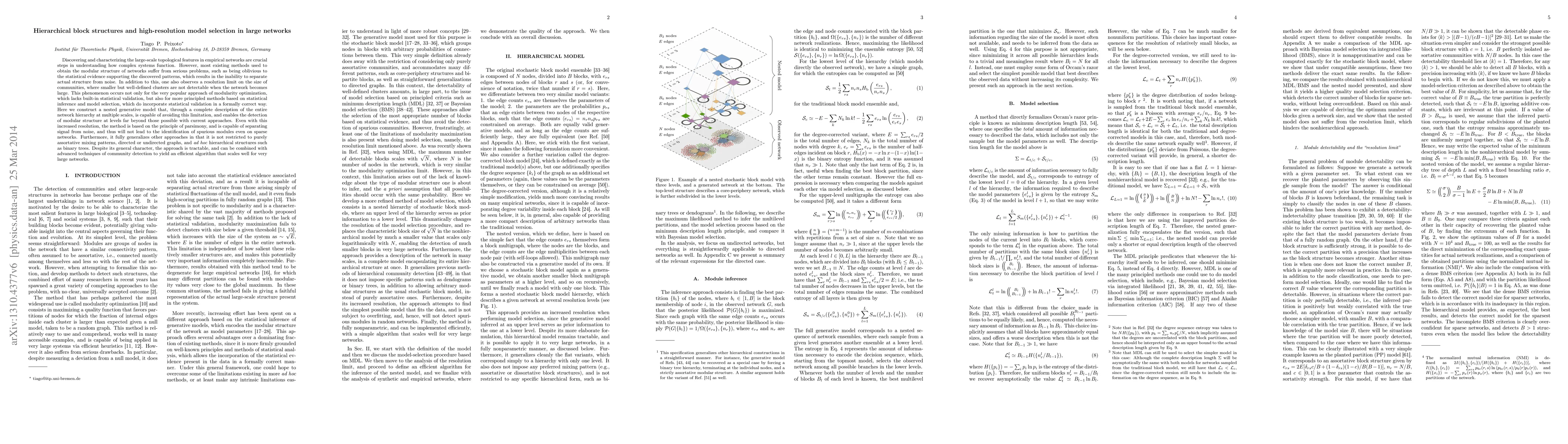 Discovering and characterizing the large-scale topological features in empirical networks are crucial steps in understanding how complex systems function. However, most existing methods used to obtain the modular structure of networks suffer from serious problems, such as being oblivious to the statistical evidence supporting the discovered patterns, which results in the inability to separate actual structure from noise. In addition to this, one also observes a resolution limit on the size of communities, where smaller but well-defined clusters are not detectable when the network becomes large. This phenomenon occurs not only for the very popular approach of modularity optimization, which lacks built-in statistical validation, but also for more principled methods based on statistical inference and model selection, which do incorporate statistical validation in a formally correct way. Here we construct a nested generative model that, through a complete description of the entire network hierarchy at multiple scales, is capable of avoiding this limitation, and enables the detection of modular structure at levels far beyond those possible with current approaches. Even with this increased resolution, the method is based on the principle of parsimony, and is capable of separating signal from noise, and thus will not lead to the identification of spurious modules even on sparse networks. Furthermore, it fully generalizes other approaches in that it is not restricted to purely assortative mixing patterns, directed or undirected graphs, and ad hoc hierarchical structures such as binary trees. Despite its general character, the approach is tractable, and can be combined with advanced techniques of community detection to yield an efficient algorithm that scales well for very large networks.