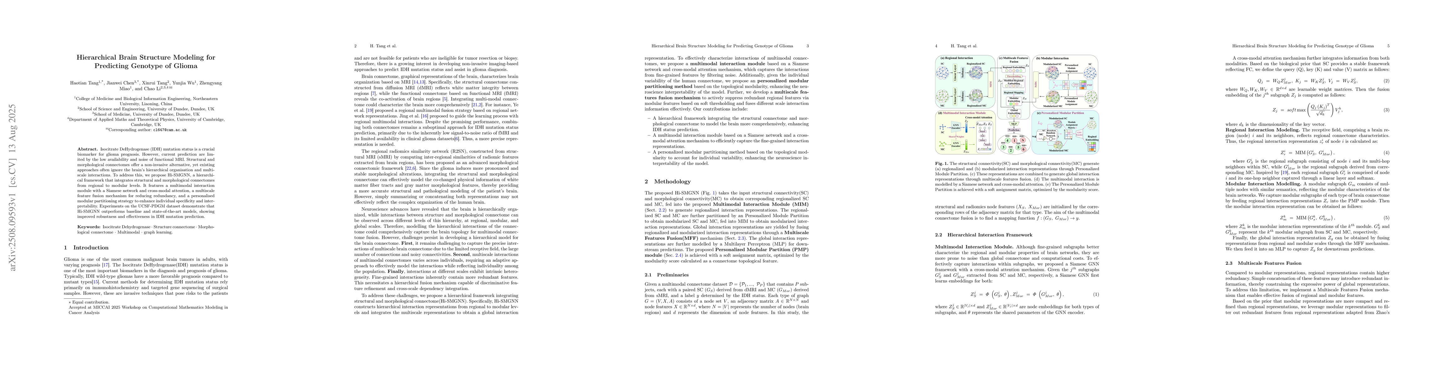 Isocitrate DeHydrogenase (IDH) mutation status is a crucial biomarker for glioma prognosis. However, current prediction methods are limited by the low availability and noise of functional MRI. Structural and morphological connectomes offer a non-invasive alternative, yet existing approaches often ignore the brain's hierarchical organisation and multiscale interactions. To address this, we propose Hi-SMGNN, a hierarchical framework that integrates structural and morphological connectomes from regional to modular levels. It features a multimodal interaction module with a Siamese network and cross-modal attention, a multiscale feature fusion mechanism for reducing redundancy, and a personalised modular partitioning strategy to enhance individual specificity and interpretability. Experiments on the UCSF-PDGM dataset demonstrate that Hi-SMGNN outperforms baseline and state-of-the-art models, showing improved robustness and effectiveness in IDH mutation prediction.