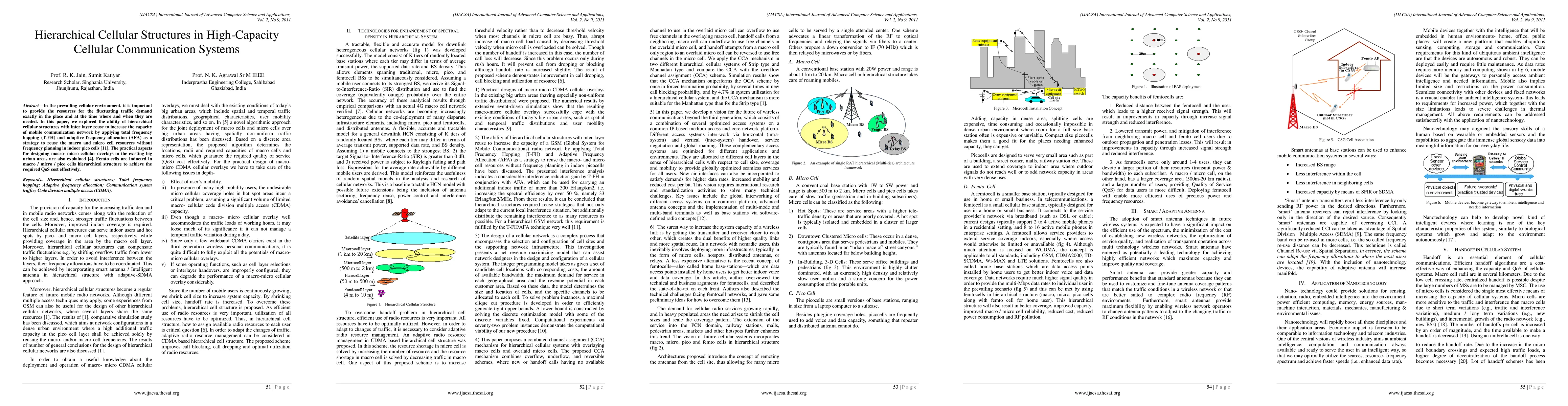 In the prevailing cellular environment, it is important to provide the resources for the fluctuating traffic demand exactly in the place and at the time where and when they are needed. In this paper, we explored the ability of hierarchical cellular structures with inter layer reuse to increase the capacity of mobile communication network by applying total frequency hopping (T-FH) and adaptive frequency allocation (AFA) as a strategy to reuse the macro and micro cell resources without frequency planning in indoor pico cells [11]. The practical aspects for designing macro- micro cellular overlays in the existing big urban areas are also explained [4]. Femto cells are inducted in macro / micro / pico cells hierarchical structure to achieve the required QoS cost effectively.