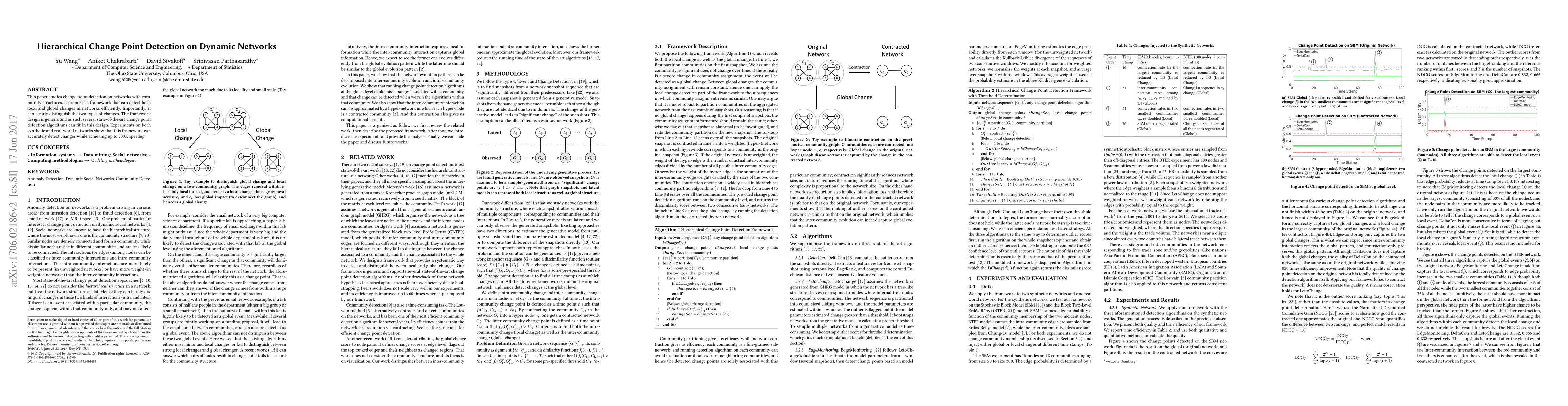 This paper introduces a hierarchical framework for detecting local and global changes in dynamic networks with community structures, achieving up to 800X speedup and distinguishing between the two types of changes efficiently. The proposed framework is generic and compatible with various state-of-the-art algorithms.
