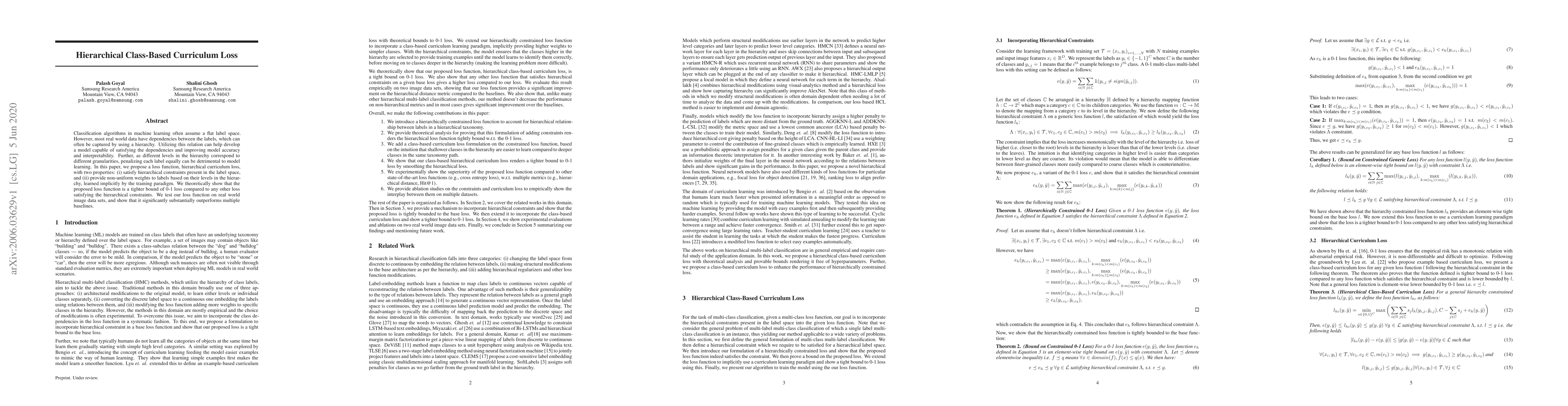 Classification algorithms in machine learning often assume a flat label space. However, most real world data have dependencies between the labels, which can often be captured by using a hierarchy. Utilizing this relation can help develop a model capable of satisfying the dependencies and improving model accuracy and interpretability. Further, as different levels in the hierarchy correspond to different granularities, penalizing each label equally can be detrimental to model learning. In this paper, we propose a loss function, hierarchical curriculum loss, with two properties: (i) satisfy hierarchical constraints present in the label space, and (ii) provide non-uniform weights to labels based on their levels in the hierarchy, learned implicitly by the training paradigm. We theoretically show that the proposed loss function is a tighter bound of 0-1 loss compared to any other loss satisfying the hierarchical constraints. We test our loss function on real world image data sets, and show that it significantly substantially outperforms multiple baselines.