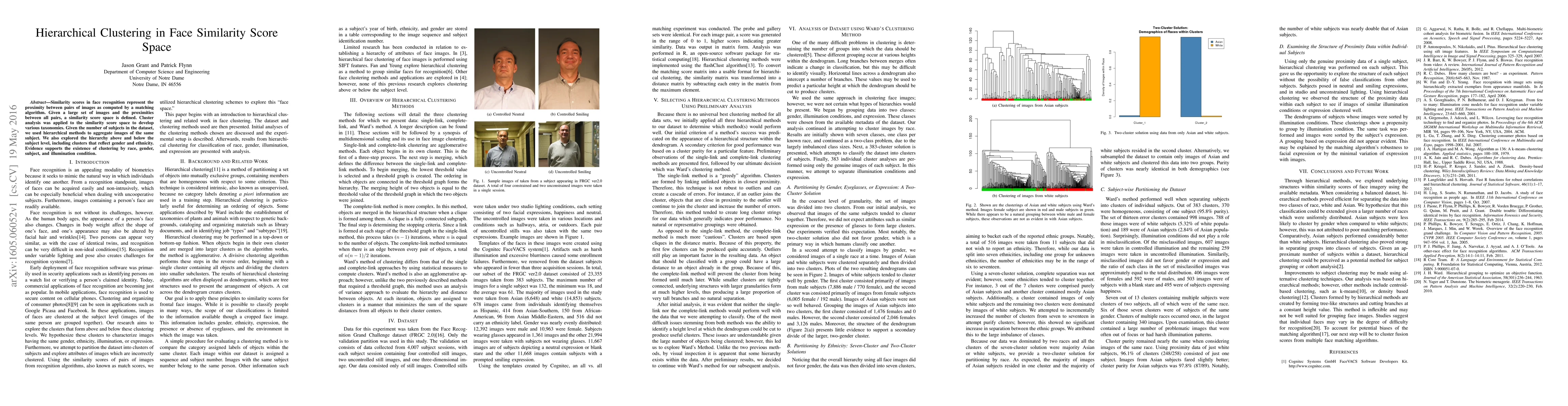 Researchers applied hierarchical clustering to face similarity scores to identify patterns in race, gender, subject, and illumination condition. The study found evidence of clustering by these factors, providing new insights into the organization of face recognition data.