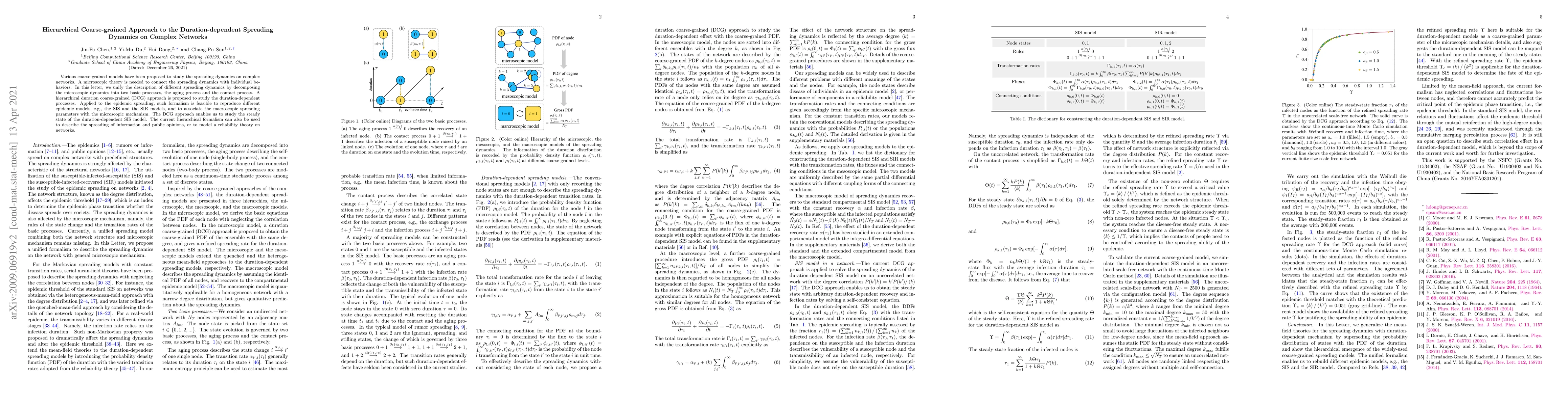 This paper proposes a hierarchical coarse-grained approach to study duration-dependent spreading dynamics in complex networks, unifying various spreading models by decomposing microscopic dynamics into aging and contact processes. The approach can reproduce epidemic models and associate microscopic transition rates with macroscopic parameters, enabling the study of information spreading and reliability theory.