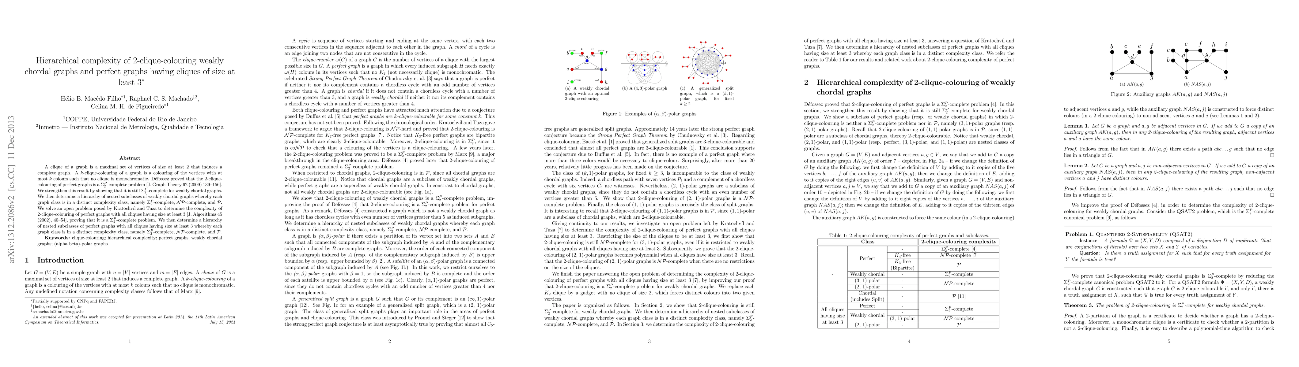 A clique of a graph is a maximal set of vertices of size at least 2 that induces a complete graph. A $k$-clique-colouring of a graph is a colouring of the vertices with at most $k$ colours such that no clique is monochromatic. D\'efossez proved that the 2-clique-colouring of perfect graphs is a $\Sigma_2^P$-complete problem [J. Graph Theory 62 (2009) 139--156]. We strengthen this result by showing that it is still $\Sigma_2^P$-complete for weakly chordal graphs. We then determine a hierarchy of nested subclasses of weakly chordal graphs whereby each graph class is in a distinct complexity class, namely $\Sigma_2^P$-complete, $\mathcal{NP}$-complete, and $\mathcal{P}$. We solve an open problem posed by Kratochv\'il and Tuza to determine the complexity of 2-clique-colouring of perfect graphs with all cliques having size at least 3 [J. Algorithms 45 (2002), 40--54], proving that it is a $\Sigma_2^P$-complete problem. We then determine a hierarchy of nested subclasses of perfect graphs with all cliques having size at least 3 whereby each graph class is in a distinct complexity class, namely $\Sigma_2^P$-complete, $\mathcal{NP}$-complete, and $\mathcal{P}$.