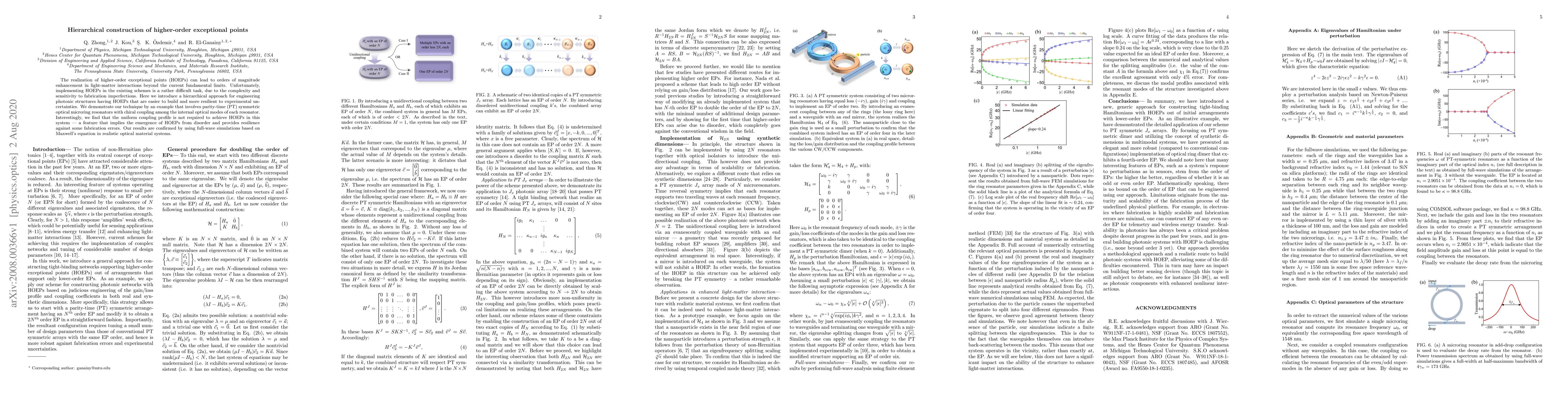 The realization of higher-order exceptional points (HOEPs) can lead to orders of magnitude enhancement in light-matter interactions beyond the current fundamental limits. Unfortunately, implementing HOEPs in the existing schemes is a rather difficult task, due to the complexity and sensitivity to fabrication imperfections. Here we introduce a hierarchical approach for engineering photonic structures having HOEPs that are easier to build and more resilient to experimental uncertainties. We demonstrate our technique by an example that involves parity-time (PT) symmetric optical microring resonators with chiral coupling among the internal optical modes of each resonator. Interestingly, we find that the uniform coupling profile is not required to achieve HOEPs in this system -- a feature that implies the emergence of HOEPs from disorder and provides resilience against some fabrication errors. Our results are confirmed by using full-wave simulations based on Maxwell's equation in realistic optical material systems.
