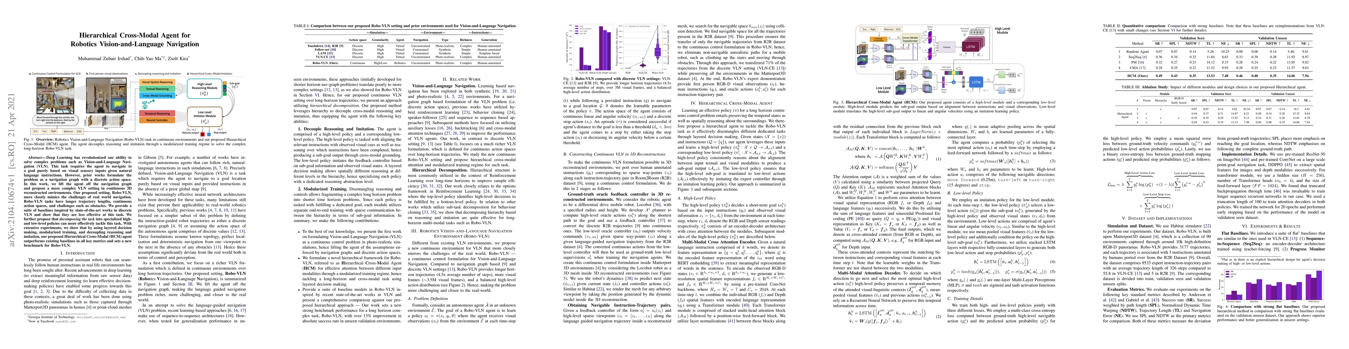 This paper proposes a Hierarchical Cross-Modal (HCM) agent for Vision-and-Language Navigation in continuous 3D environments, termed Robo-VLN, which outperforms existing discrete navigation methods. The HCM agent employs layered decision making and modularized training to handle complex navigation challenges.