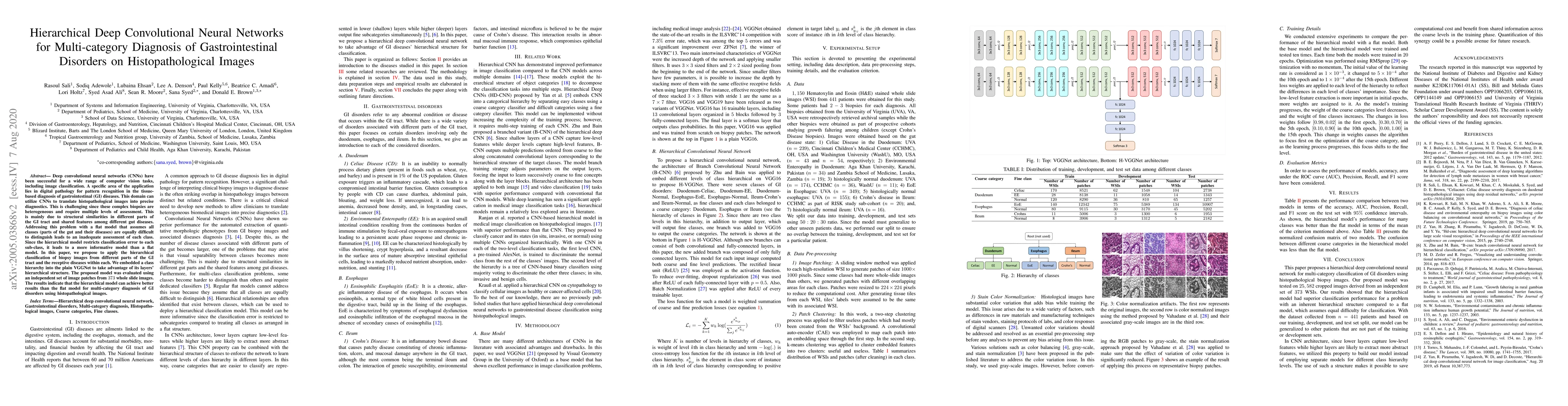 This paper proposes a hierarchical deep convolutional neural network to improve the diagnosis of gastrointestinal disorders using histopathological images. By embedding a class hierarchy into the VGGNet, the model achieves better results than a flat model, demonstrating enhanced multi-category diagnosis accuracy.