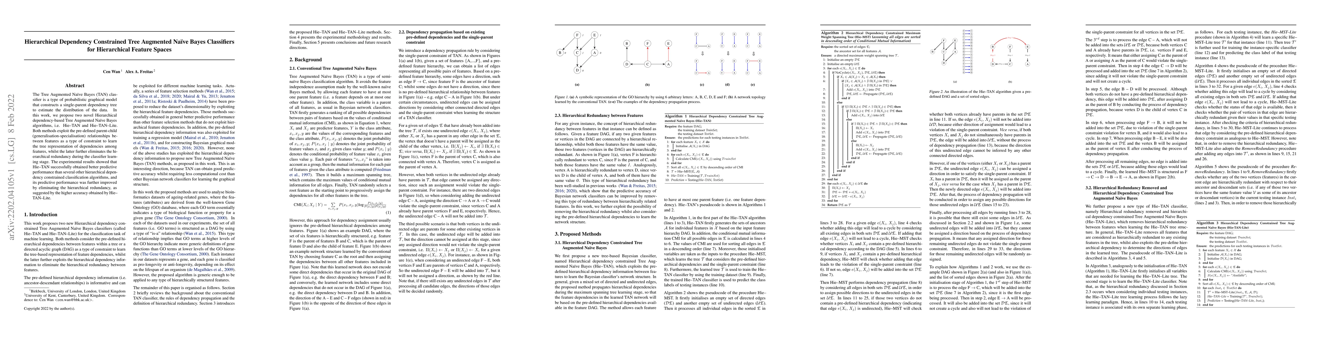 This paper proposes two novel hierarchical dependency-based Tree Augmented Naive Bayes (TAN) classifiers, Hie-TAN and Hie-TAN-Lite, which leverage parent-child relationships to model feature dependencies. Experimental results indicate that Hie-TAN outperforms other hierarchical classifiers, with Hie-TAN-Lite further improving performance by eliminating hierarchical redundancy.