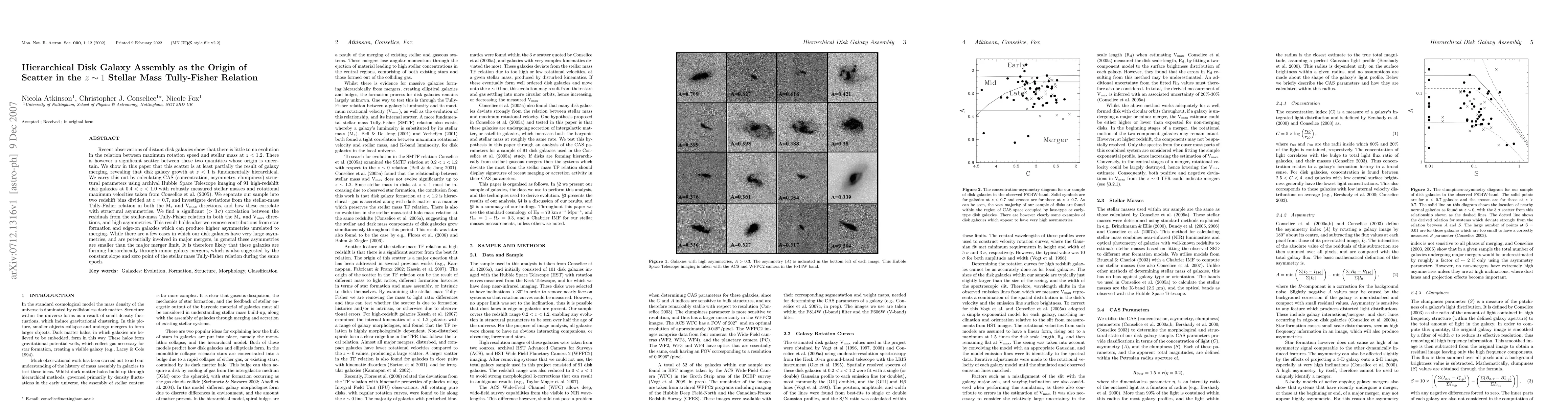 This paper investigates the scatter in the z~1 stellar mass Tully-Fisher relation, attributing it to hierarchical disk galaxy assembly through minor mergers. Using structural parameters from Hubble Space Telescope imaging, the study finds a significant correlation between structural asymmetries and deviations from the Tully-Fisher relation, indicating that minor mergers contribute to the observed scatter.