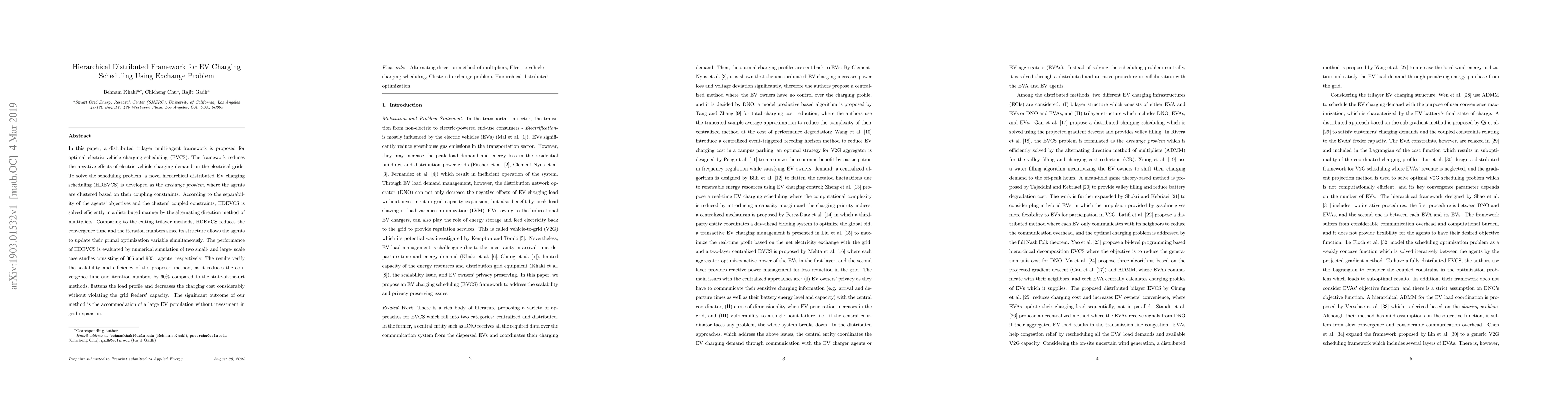 This paper proposes a trilayer multi-agent framework for optimal electric vehicle charging scheduling that reduces grid impact. The hierarchical distributed EV charging scheduling (HDEVCS) method, based on the exchange problem, efficiently clusters agents and solves optimization via the alternating direction method of multipliers, significantly reducing convergence time and iterations compared to existing trilayer methods.