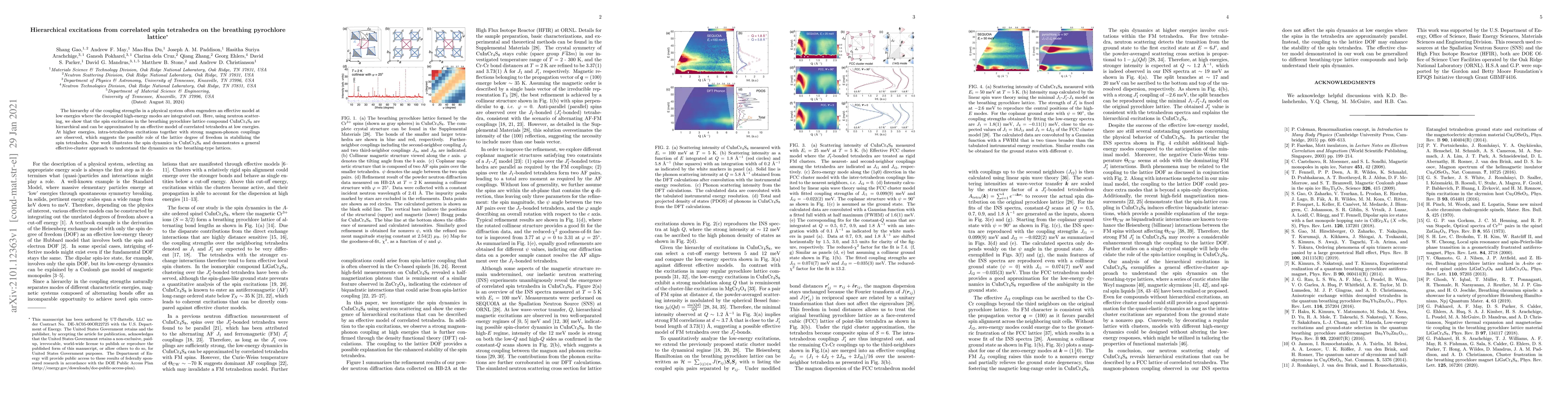 This study reveals hierarchical spin excitations in the breathing pyrochlore lattice compound CuInCr$_4$S$_8$ using neutron scattering, showing that low-energy excitations can be modeled by correlated spin tetrahedra. Higher-energy excitations and strong magnon-phonon couplings suggest lattice dynamics stabilize the spin tetrahedra.