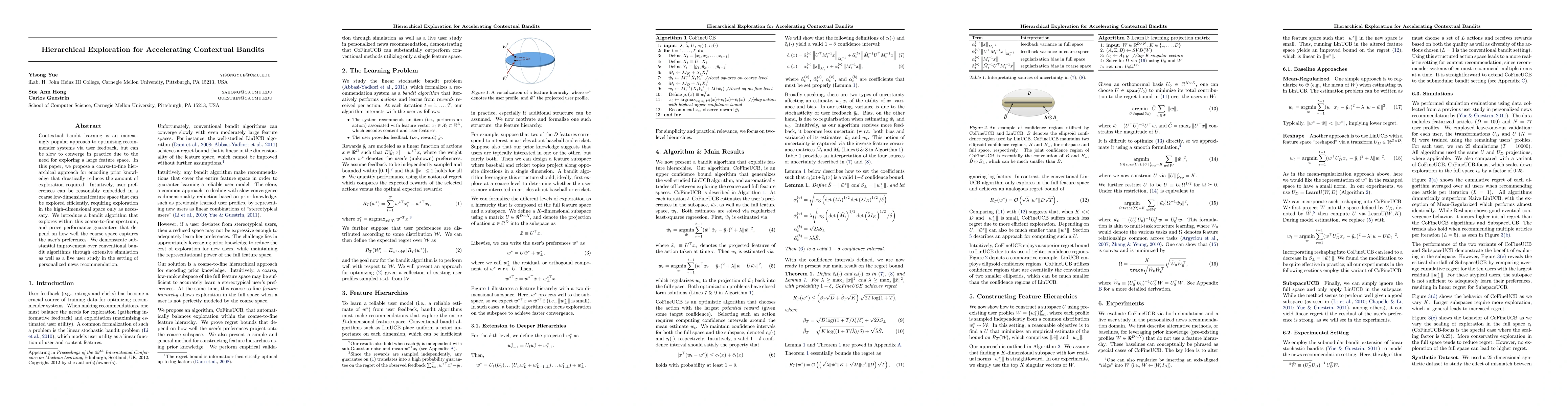 Researchers propose a hierarchical approach to contextual bandit learning that reduces exploration time by encoding user preferences in a coarse low-dimensional feature space. This approach leads to substantial improvement over conventional algorithms through simulation and live user studies.