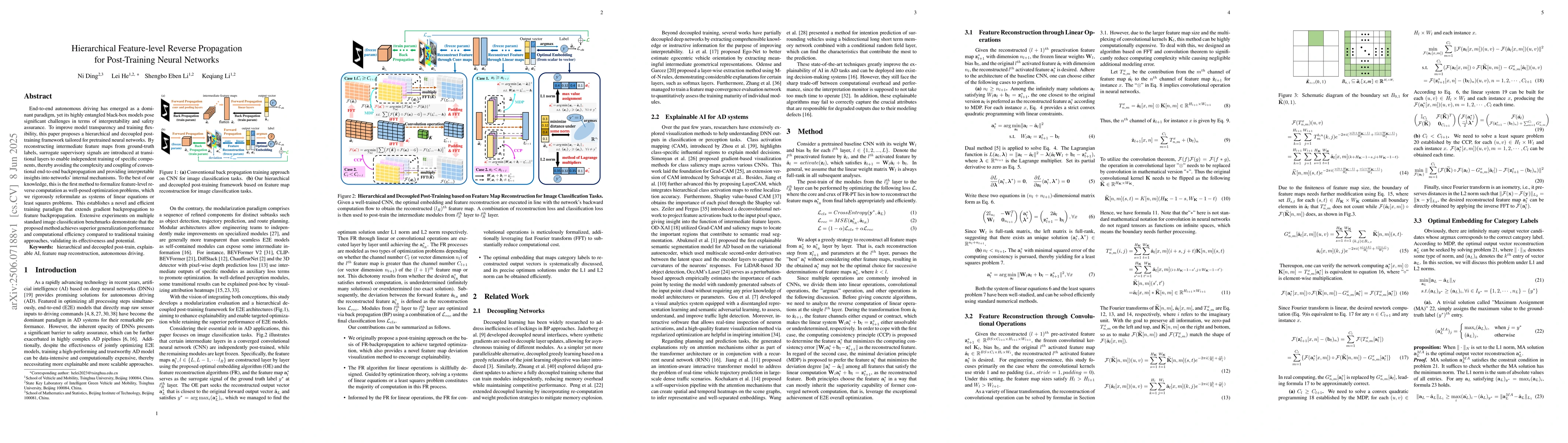 End-to-end autonomous driving has emerged as a dominant paradigm, yet its highly entangled black-box models pose significant challenges in terms of interpretability and safety assurance. To improve model transparency and training flexibility, this paper proposes a hierarchical and decoupled post-training framework tailored for pretrained neural networks. By reconstructing intermediate feature maps from ground-truth labels, surrogate supervisory signals are introduced at transitional layers to enable independent training of specific components, thereby avoiding the complexity and coupling of conventional end-to-end backpropagation and providing interpretable insights into networks' internal mechanisms. To the best of our knowledge, this is the first method to formalize feature-level reverse computation as well-posed optimization problems, which we rigorously reformulate as systems of linear equations or least squares problems. This establishes a novel and efficient training paradigm that extends gradient backpropagation to feature backpropagation. Extensive experiments on multiple standard image classification benchmarks demonstrate that the proposed method achieves superior generalization performance and computational efficiency compared to traditional training approaches, validating its effectiveness and potential.