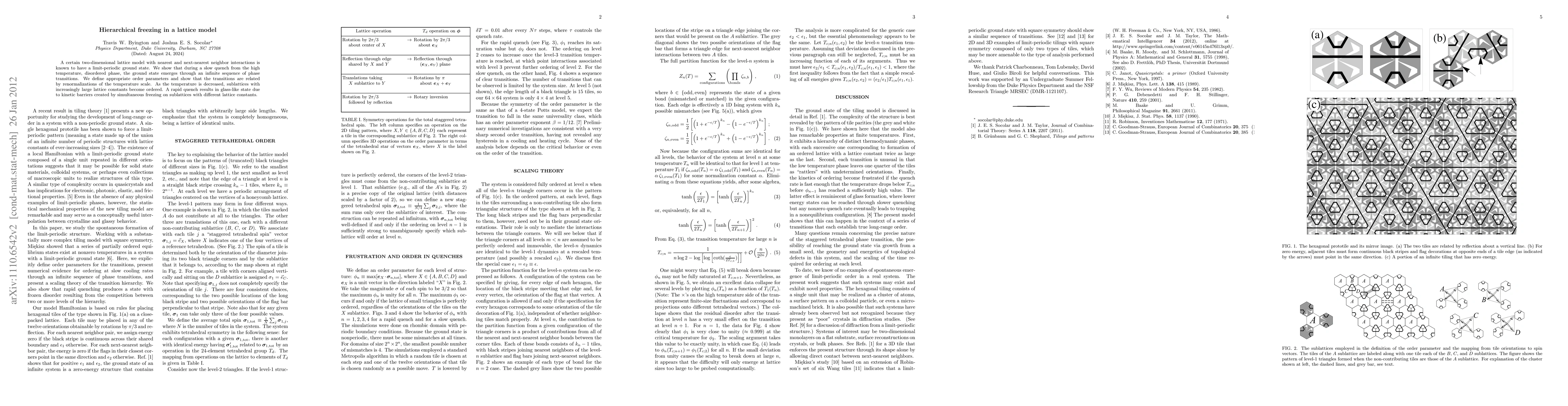 A certain two-dimensional lattice model with nearest and next-nearest neighbor interactions is known to have a limit-periodic ground state. We show that during a slow quench from the high temperature, disordered phase, the ground state emerges through an infinite sequence of phase transitions. We define appropriate order parameters and show that the transitions are related by renormalizations of the temperature scale. As the temperature is decreased, sublattices with increasingly large lattice constants become ordered. A rapid quench results in glass-like state due to kinetic barriers created by simultaneous freezing on sublattices with different lattice constants.