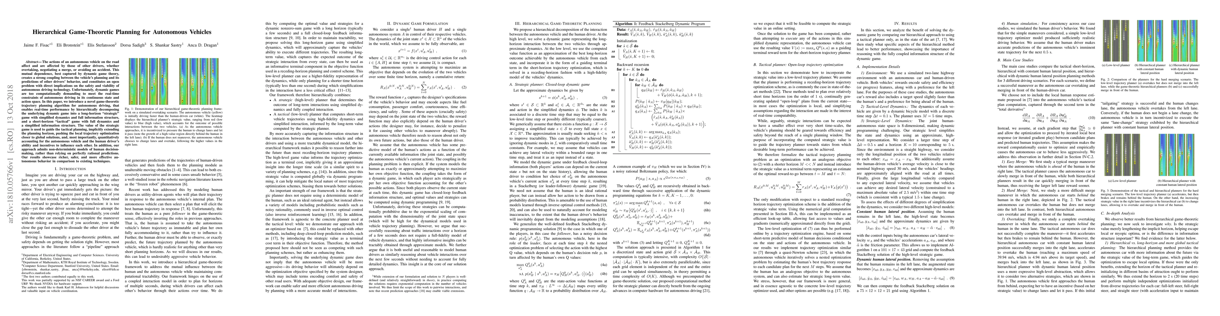 This paper proposes a hierarchical game-theoretic planning algorithm for autonomous vehicles that decomposes dynamic games into strategic and tactical levels to meet real-time constraints. The approach enhances safety and effectiveness by accounting for mutual influence between the vehicle and other drivers.