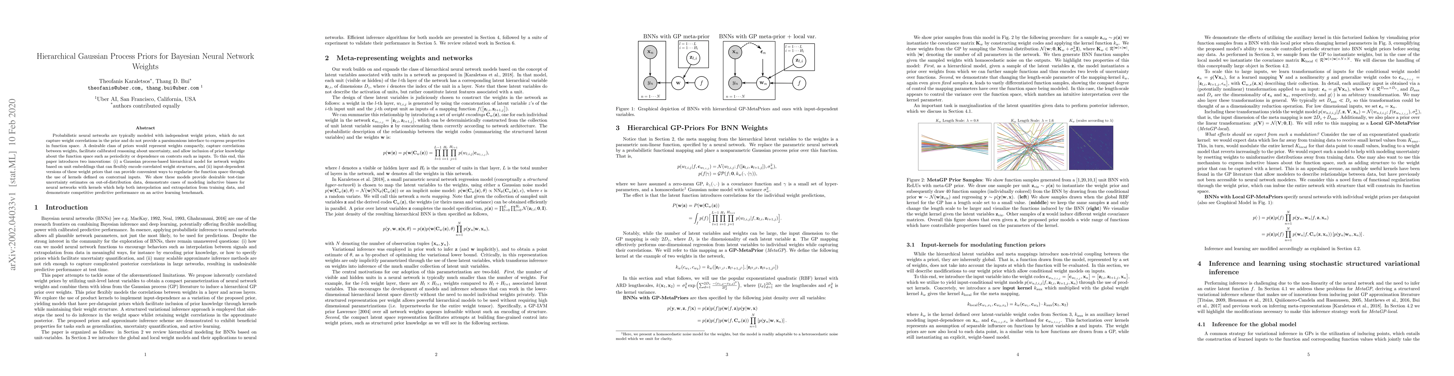 This paper proposes a Gaussian process-based hierarchical model for Bayesian neural network weights to capture weight correlations and encode contextual dependencies. The approach provides better uncertainty estimates and modeling of inductive biases, achieving competitive predictive performance.