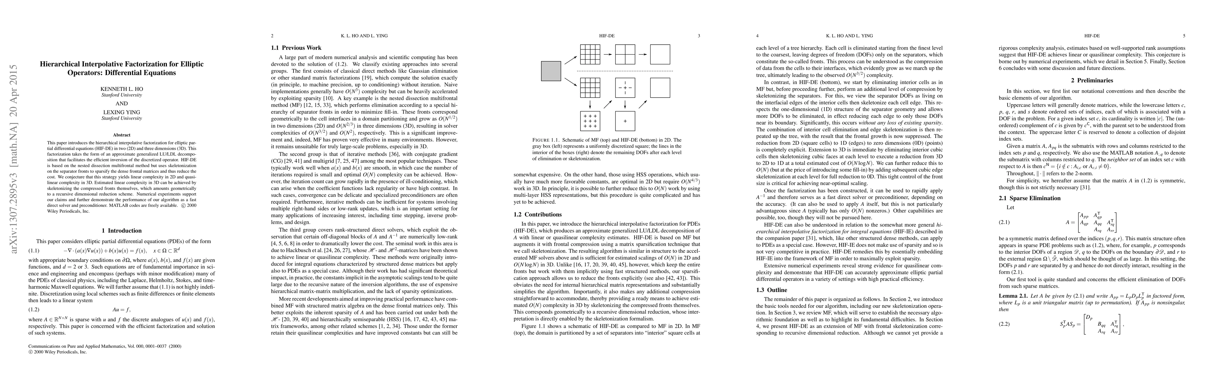 A hierarchical interpolative factorization method was used to solve elliptic partial differential equations.
