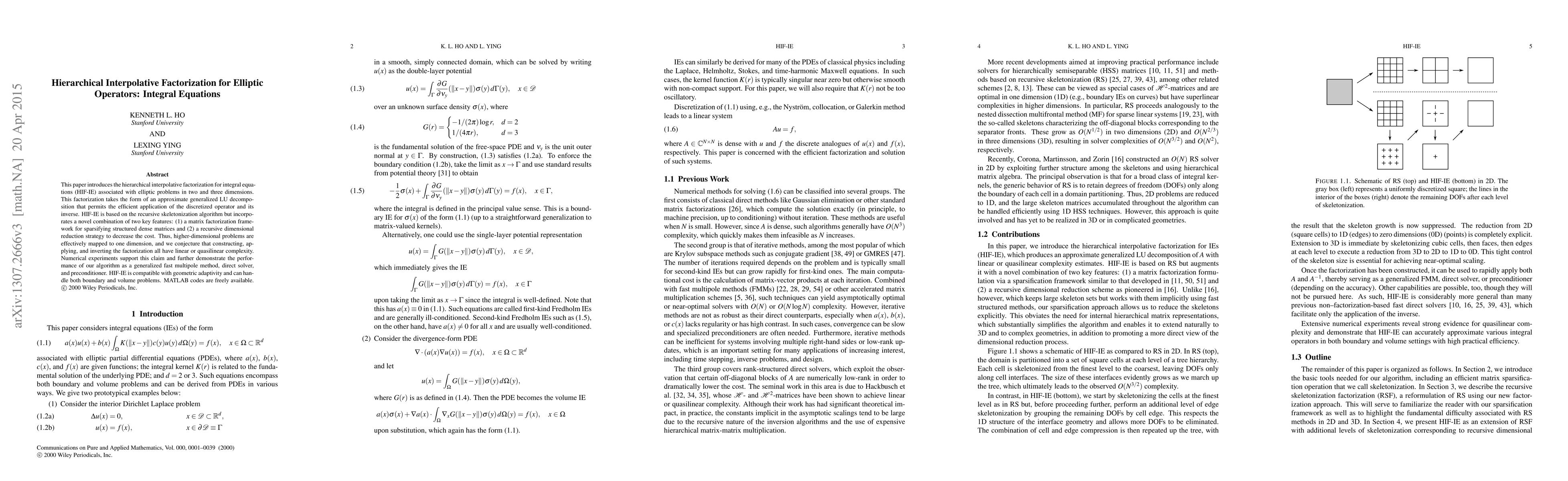 This paper proposes hierarchical interpolative factorization for integral equations (HIF-IE) to efficiently solve elliptic problems in two and three dimensions, achieving linear or quasilinear complexity. Numerical experiments show its effectiveness as a generalized fast multipole method and preconditioner.