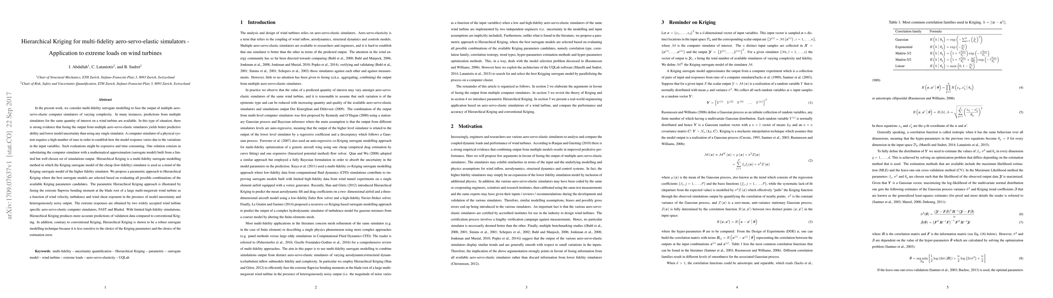 This paper proposes a parametric Hierarchical Kriging method for fusing outputs from multiple aero-servo-elastic simulators to improve predictions of extreme loads on wind turbines. The method selects the best surrogate models based on evaluating all possible combinations of Kriging parameters, demonstrating superior accuracy and robustness compared to conventional Kriging.