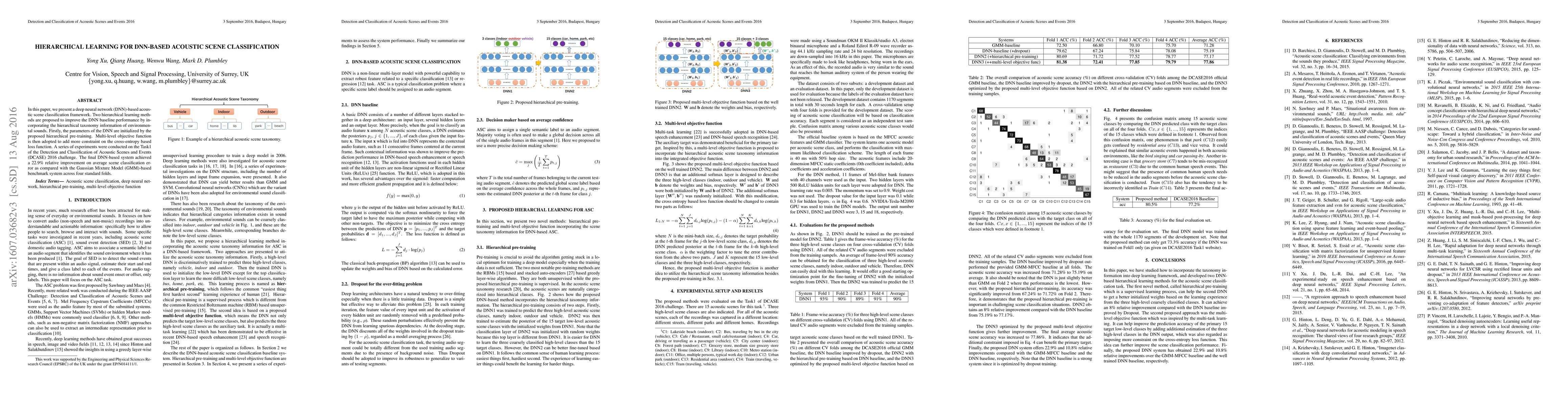 This paper introduces a DNN-based framework for acoustic scene classification, employing hierarchical learning methods to enhance performance. Experiments on the DCASE 2016 challenge show a 22.9% relative improvement over the GMM-based benchmark system.