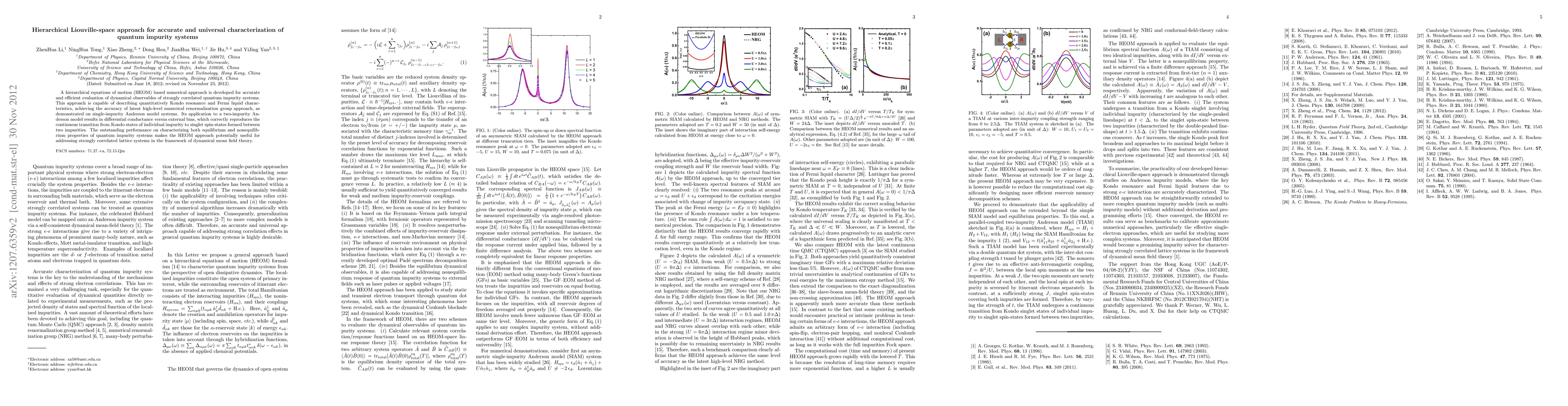 This paper introduces a hierarchical equations of motion (HEOM) approach for evaluating dynamical observables in quantum impurity systems, achieving high accuracy comparable to numerical renormalization group methods. It successfully characterizes Kondo resonance and Fermi liquid behavior, and demonstrates its potential for studying strongly correlated lattice systems.