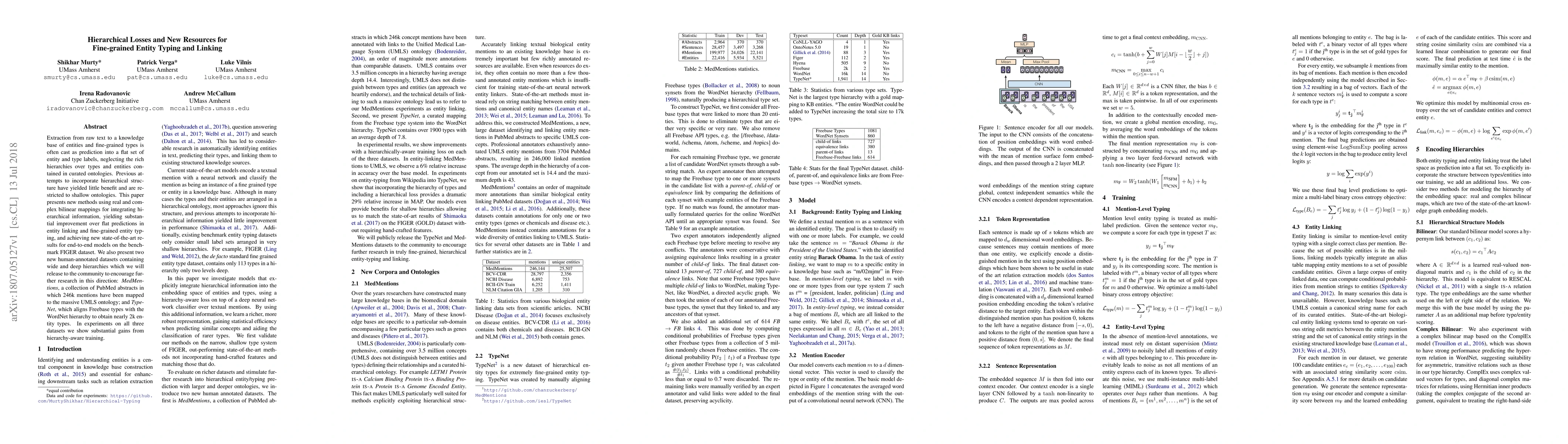 New methods for entity linking and fine-grained typing using hierarchical structure improve state-of-the-art results on benchmark datasets, releasing two new human-annotated datasets to encourage further research.