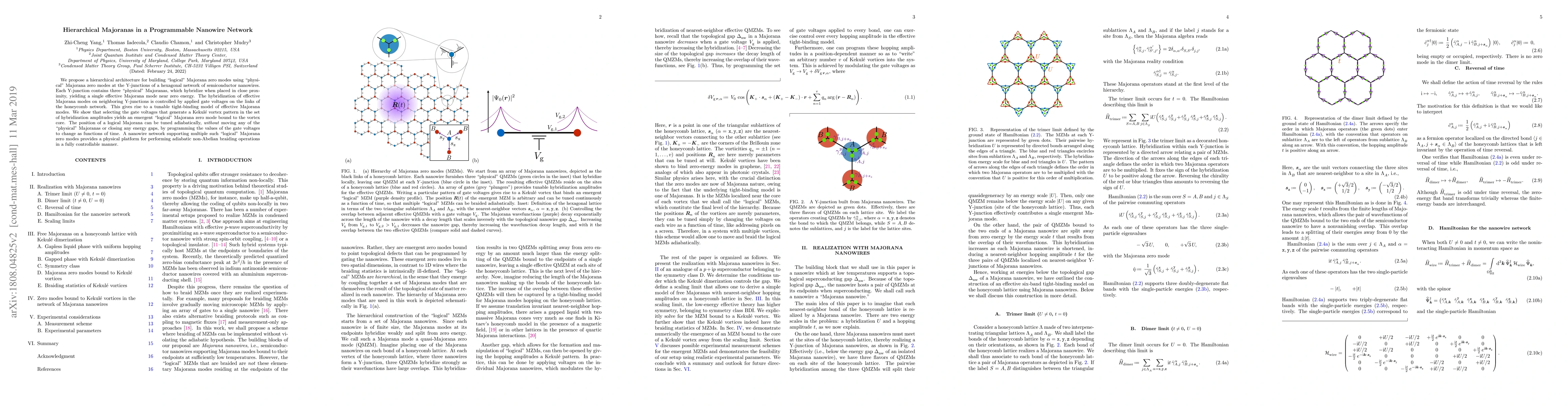 We propose a hierarchical architecture for building "logical" Majorana zero modes using "physical" Majorana zero modes at the Y-junctions of a hexagonal network of semiconductor nanowires. Each Y-junction contains three "physical" Majoranas, which hybridize when placed in close proximity, yielding a single effective Majorana mode near zero energy. The hybridization of effective Majorana modes on neighboring Y-junctions is controlled by applied gate voltages on the links of the honeycomb network. This gives rise to a tunable tight-binding model of effective Majorana modes. We show that selecting the gate voltages that generate a Kekul\'e vortex pattern in the set of hybridization amplitudes yields an emergent "logical" Majorana zero mode bound to the vortex core. The position of a logical Majorana can be tuned adiabatically, \textit{without} moving any of the "physical" Majoranas or closing any energy gaps, by programming the values of the gate voltages to change as functions of time. A nanowire network supporting multiple such "logical" Majorana zero modes provides a physical platform for performing adiabatic non-Abelian braiding operations in a fully controllable manner.