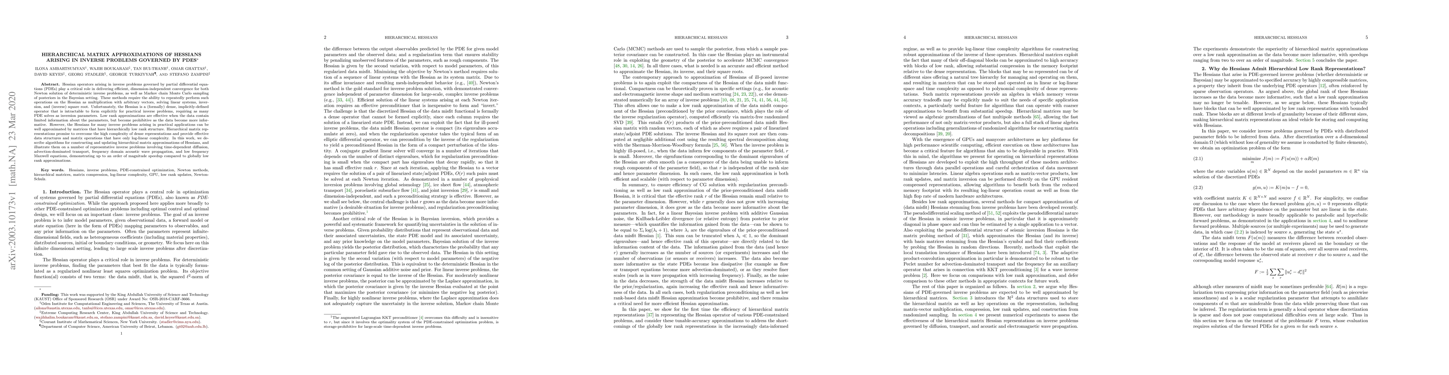 This paper proposes hierarchical matrix approximations for Hessians in inverse problems governed by PDEs to achieve dimension-independent convergence. The algorithms for constructing and updating these approximations demonstrate significant speedups over traditional low rank methods, especially for more informative data.