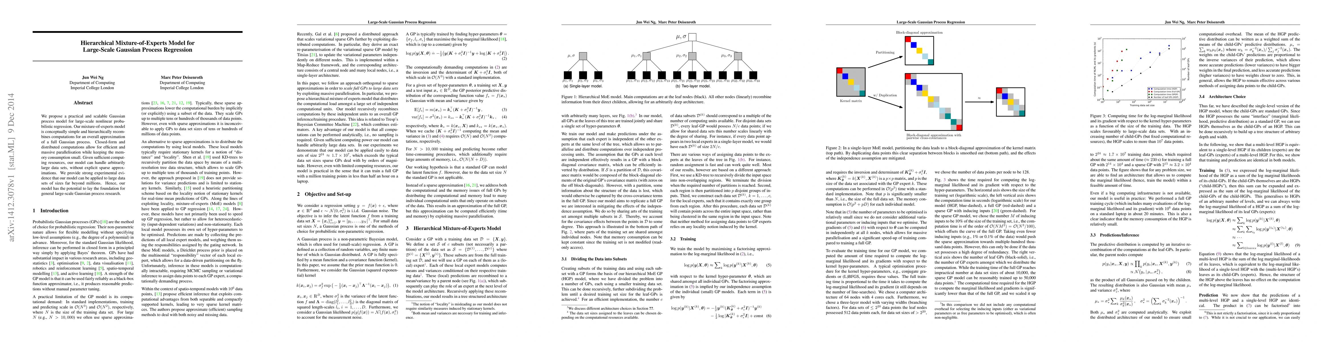 This paper introduces a scalable hierarchical mixture-of-experts model for large-scale Gaussian process regression, enabling efficient parallel computations and handling large datasets without sparse approximations, demonstrating its applicability to datasets beyond millions.