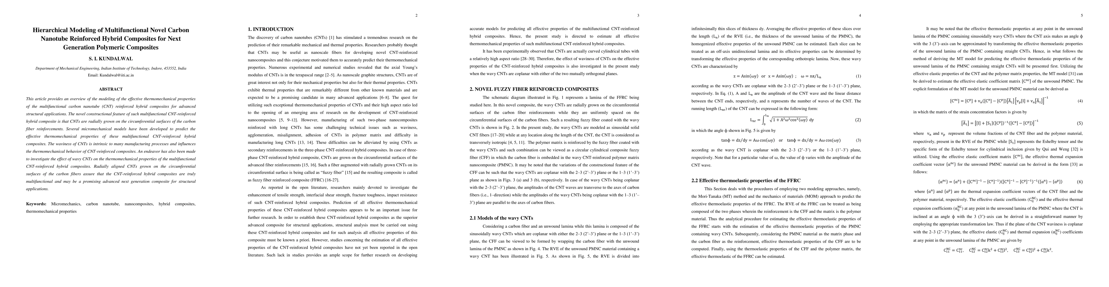 This study models the thermomechanical properties of multifunctional carbon nanotube (CNT) reinforced hybrid composites with radially grown CNTs on carbon fibers. Micromechanical models predict the impact of CNT waviness, crucial for advanced structural applications in next-generation composites.