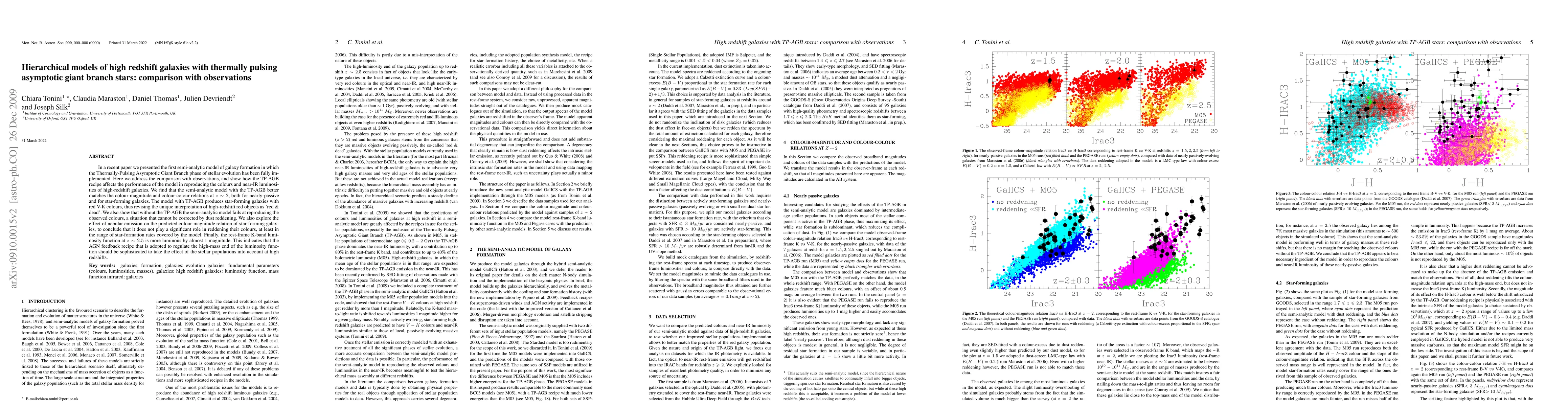 In a recent paper we presented the first semi-analytic model of galaxy formation in which the Thermally-Pulsing Asymptotic Giant Branch phase of stellar evolution has been fully implemented. Here we address the comparison with observations, and show how the TP-AGB recipe affects the performance of the model in reproducing the colours and near-IR luminosities of high-redshift galaxies. We find that the semi-analytic model with the TP-AGB better matches the colour-magnitude and colour-colour relations at z ~ 2, both for nearly-passive and for star-forming galaxies. The model with TP-AGB produces star-forming galaxies with red V-K colours, thus revising the unique interpretation of high-redshift red objects as 'red & dead'. We also show that without the TP-AGB the semi-analytic model fails at reproducing the observed colours, a situation that cannot be corrected by dust reddening. We also explore the effect of nebular emission on the predicted colour-magnitude relation of star-forming galaxies, to conclude that it does not play a significant role in reddening their colours, at least in the range of star-formation rates covered by the model. Finally, the rest-frame K-band luminosity function at z ~ 2.5 is more luminous by almost 1 magnitude. This indicates that the AGN feedback recipe that is adopted to regulate the high-mass end of the luminosity function should be sophisticated to take the effect of the stellar populations into account at high redshifts.