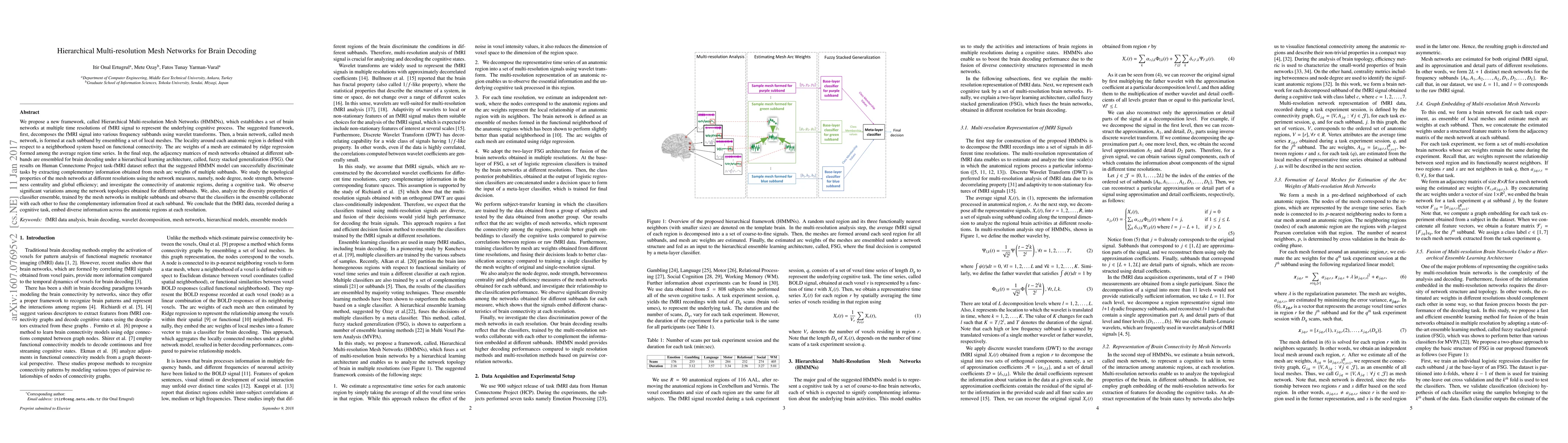 The paper proposes a Hierarchical Multi-resolution Mesh Networks (HMMNs) framework to decode brain activity using fMRI signals across multiple time resolutions. The framework extracts complementary information from different frequency subbands of fMRI data to discriminate tasks effectively.