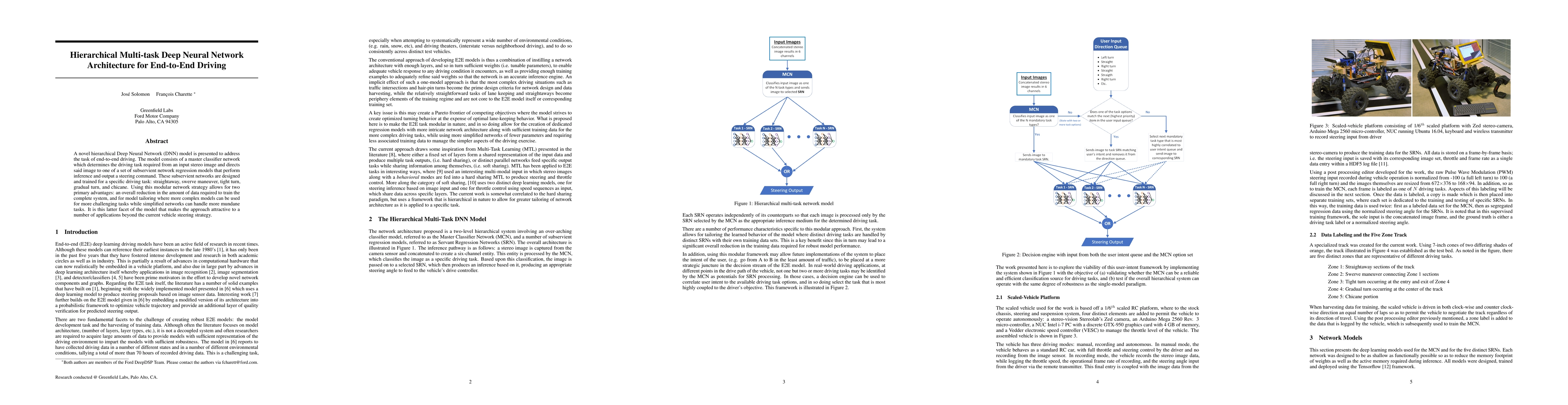 A novel hierarchical Deep Neural Network (DNN) model is presented to address the task of end-to-end driving. The model consists of a master classifier network which determines the driving task required from an input stereo image and directs said image to one of a set of subservient network regression models that perform inference and output a steering command. These subservient networks are designed and trained for a specific driving task: straightaway, swerve maneuver, tight turn, gradual turn, and chicane. Using this modular network strategy allows for two primary advantages: an overall reduction in the amount of data required to train the complete system, and for model tailoring where more complex models can be used for more challenging tasks while simplified networks can handle more mundane tasks. It is this latter facet of the model that makes the approach attractive to a number of applications beyond the current vehicle steering strategy.