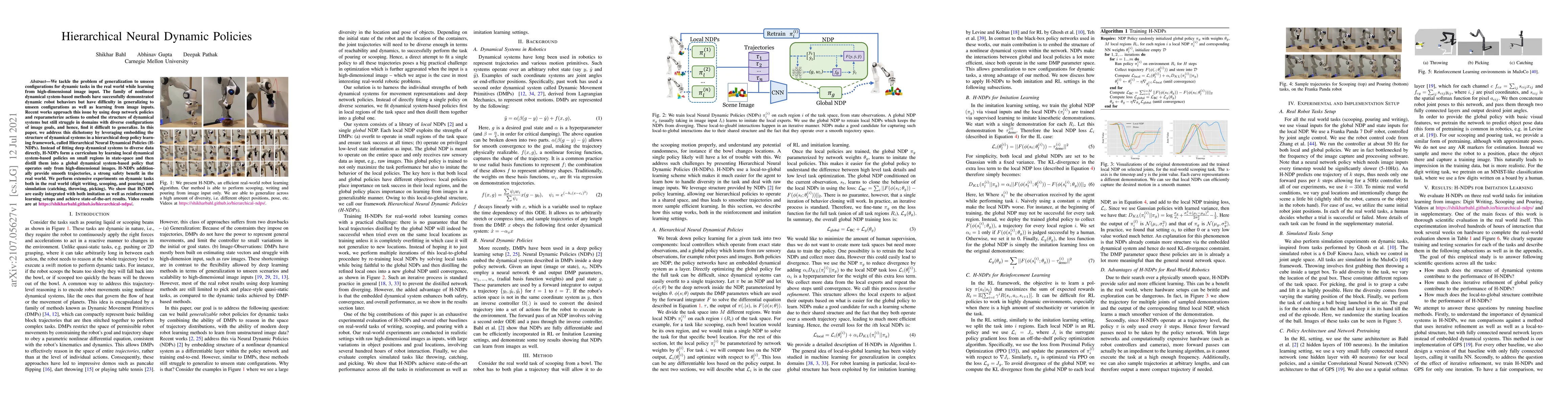 This paper introduces Hierarchical Neural Dynamical Policies, a framework that leverages hierarchical learning to generalize dynamic robot behaviors to unseen configurations and learn from high-dimensional image inputs, achieving state-of-the-art results in various tasks.