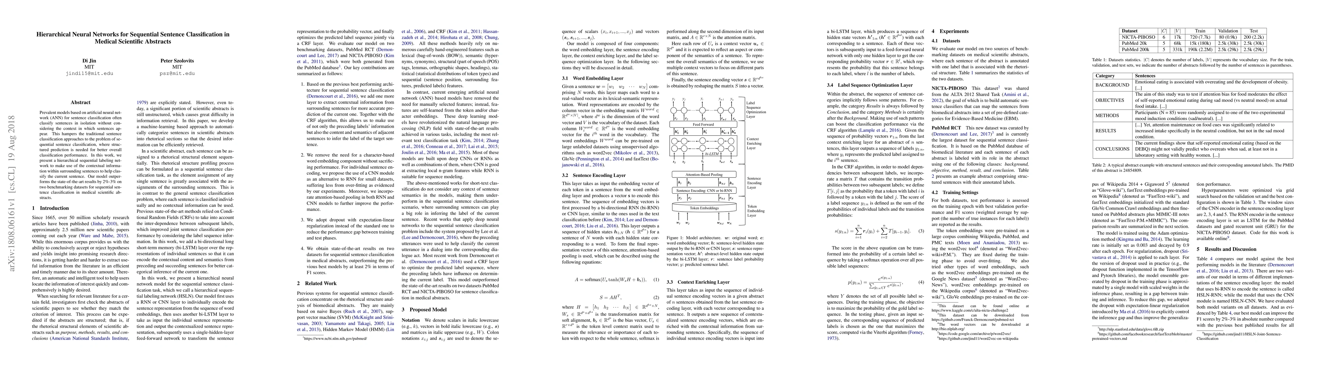 This research introduces a hierarchical neural network for sequential sentence classification in medical scientific abstracts, leveraging contextual information from surrounding sentences for improved performance. The proposed model achieves superior results, outperforming state-of-the-art methods by 2%-3% on benchmark datasets.